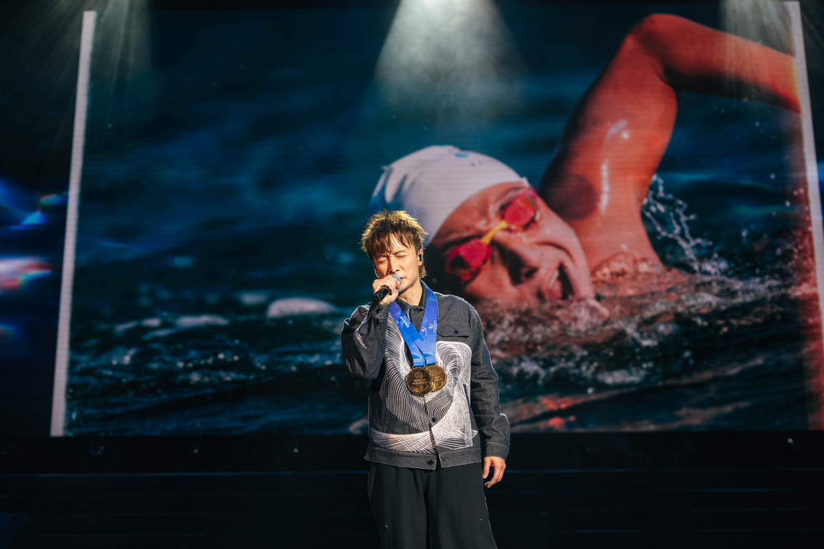 方力申演唱經典之作《好心好報》,胡定欣驚喜現身,引來全場歡呼。方力申表示與胡定欣相識近30年,卻從未相約唱K或喝酒,更在台上展示二人年輕時的合照。定欣指方力申當年十分沉默不說話,而最令她意想不到,是香港游泳代表去了當歌手,自己抱有歌手夢卻去了演戲。提到二人在劇集《廉政狙擊》首度合作,方力申笑言極度興奮:「她演我媽媽,我整套劇第一句對着她的對白,人生演過這麼多戲從未如此興奮,我推開門就罵:『八婆!』開心到難以形容。」他更強調,若非由胡定欣擔任對手,絕不會接拍該劇。