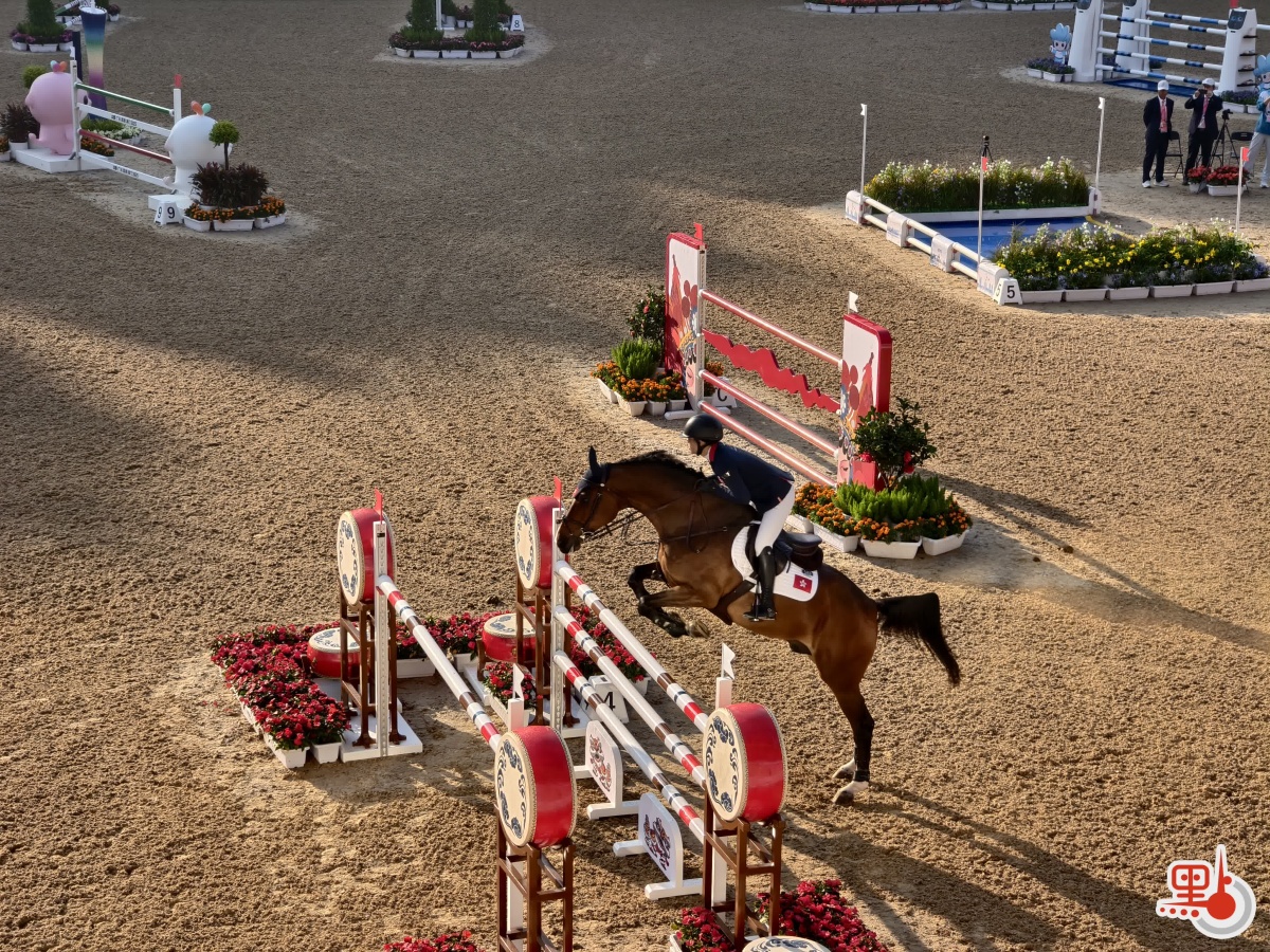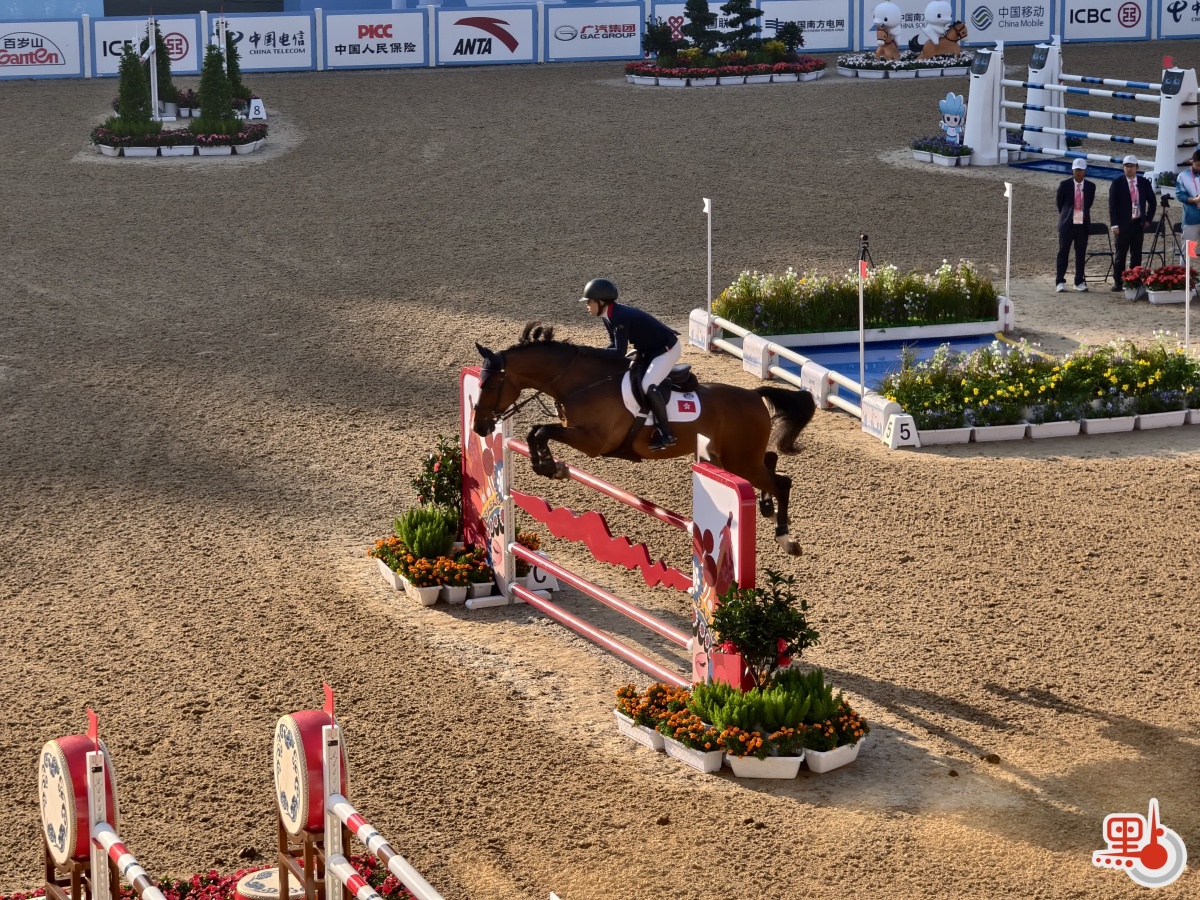 【點新聞報道】11月17日上午,十五運會馬術項目場地障礙團體賽決賽(個人資格賽)第一輪正式開賽。梁巧羚是第一位出場的港隊選手。她的第一輪比賽中,障礙罰分4分,時間罰分0分,在前7個出場選手中排名暫列第二。