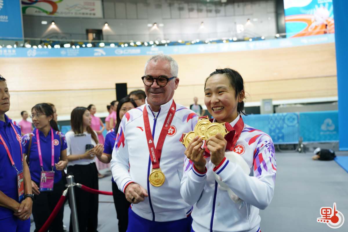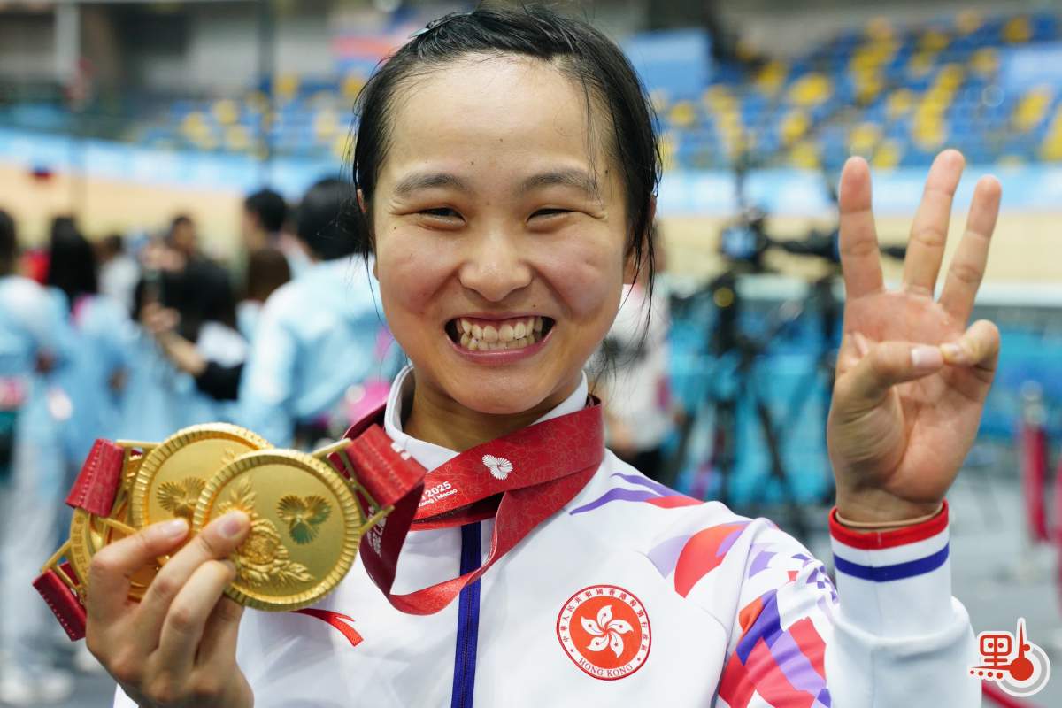 【點新聞報道】「小女車神」李思穎在手握兩金後,今日(17日)繼續出戰場地單車女子全能賽。完成全能賽四個項目後,李思穎取得總分124分,成功奪金!連同她在公路單車女子個人賽以及昨日與梁穎儀於女子場地單車麥迪遜賽取得的金牌,這是李思穎在今屆全運會取得的第三面金牌。她也超越前輩黃金寶,以4面金牌的成績,成為香港史上最多全運會金牌的運動員。