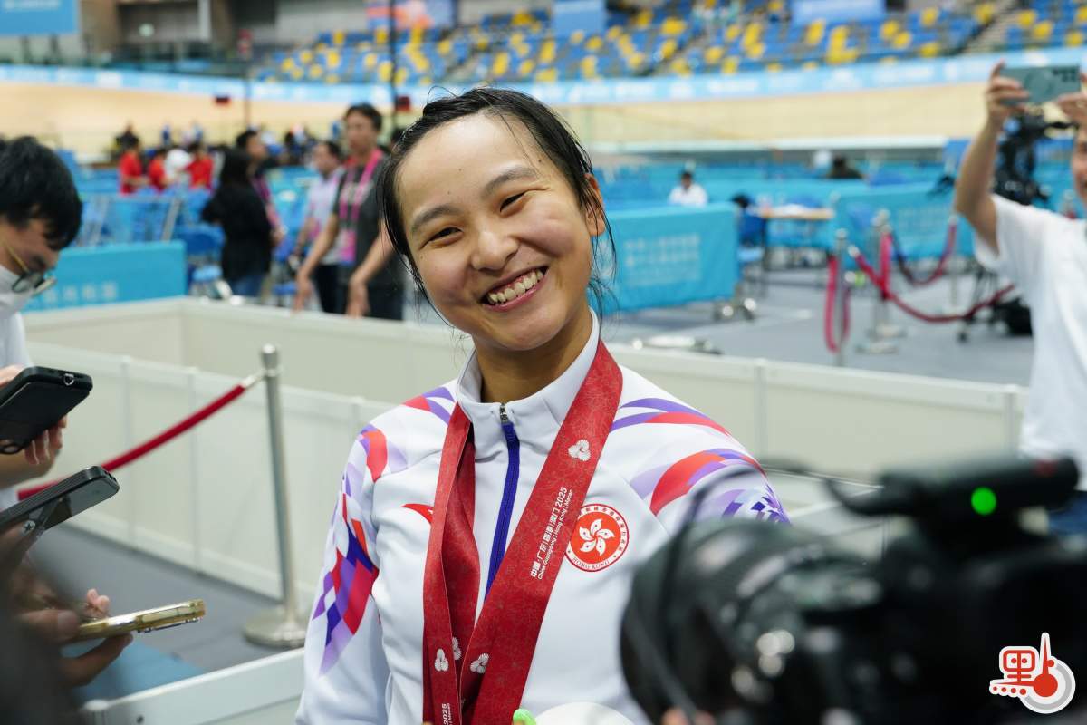李思穎提到,今年訓練量增加很多,感謝港人的支持以及教練團隊,這塊金牌很重要。她又說,很多師兄師姐已經退下來,今屆自己擔任要獲得成績的位置,因此很大壓力,幸好做到要做的事,最重要是相信自己的心態。