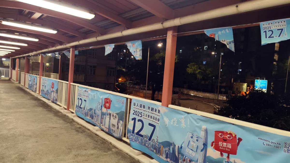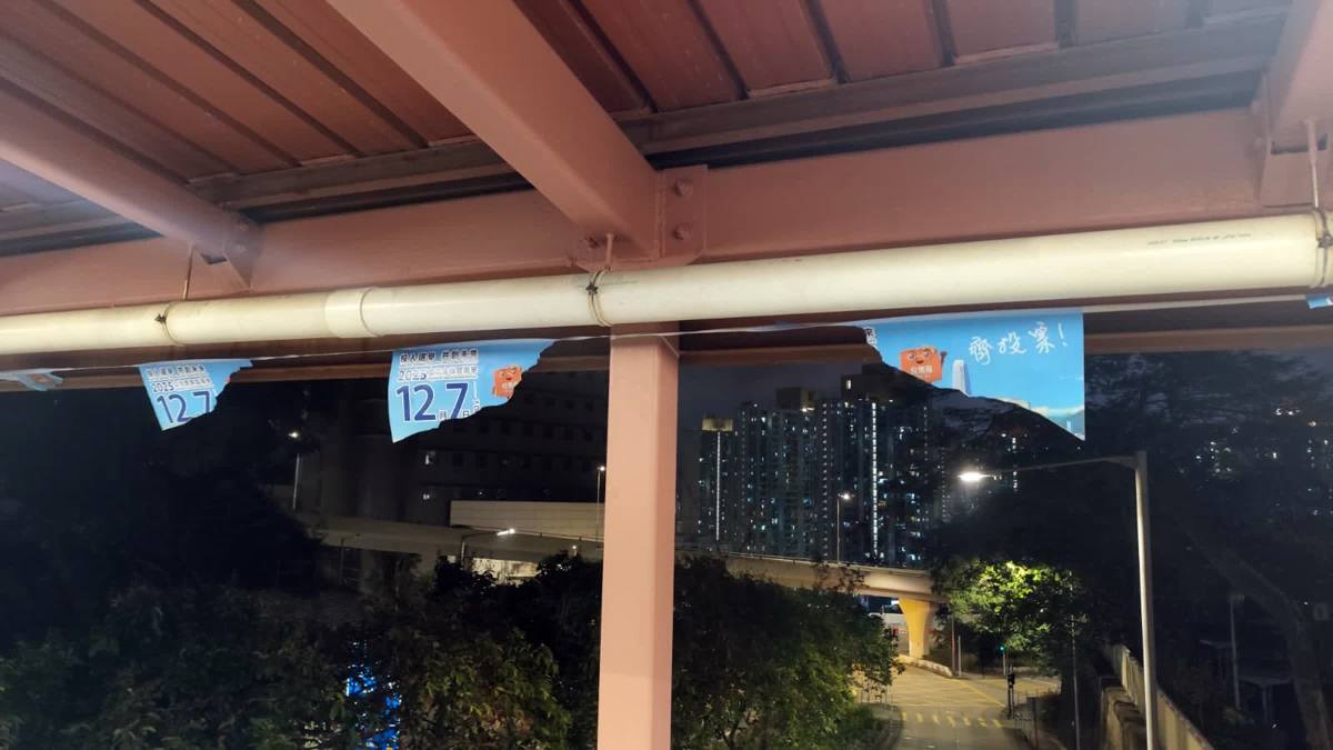 【點新聞報道】今(17日)晚約7時,警方接報指在石硤尾澤安邨連接配水庫遊樂場的行人天橋上,有大量立法會換屆選舉的宣傳海報損毀。現場所見,損毀的海報至少有20幅,主要懸掛在行人天橋上方,惟現場未見丟棄的海報殘骸。