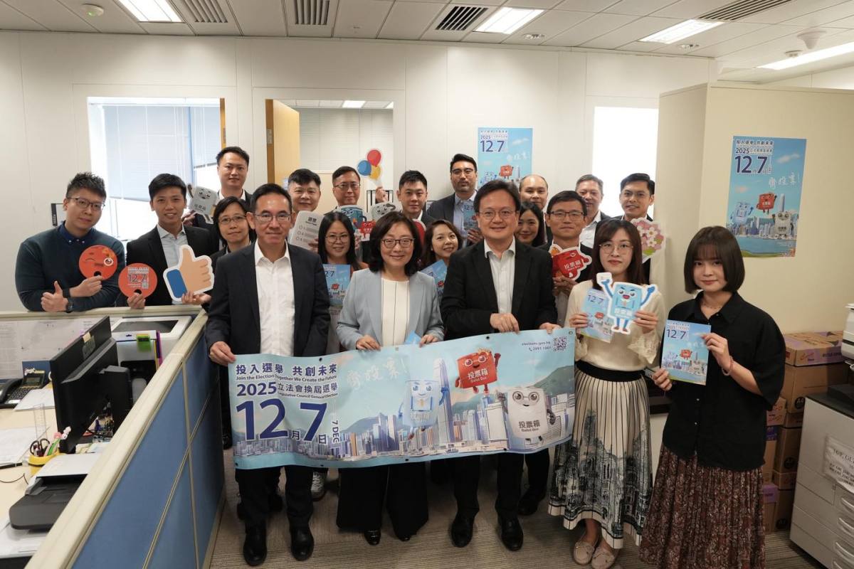 【點新聞報道】發展局局長甯漢豪11月17日聯同副局長林智文走訪政府總部發展局的多個樓層,向不同組別的同事表達謝意,以及鼓勵他們積極履行公民責任,並帶動親友一同參與,在選舉日踴躍投票。