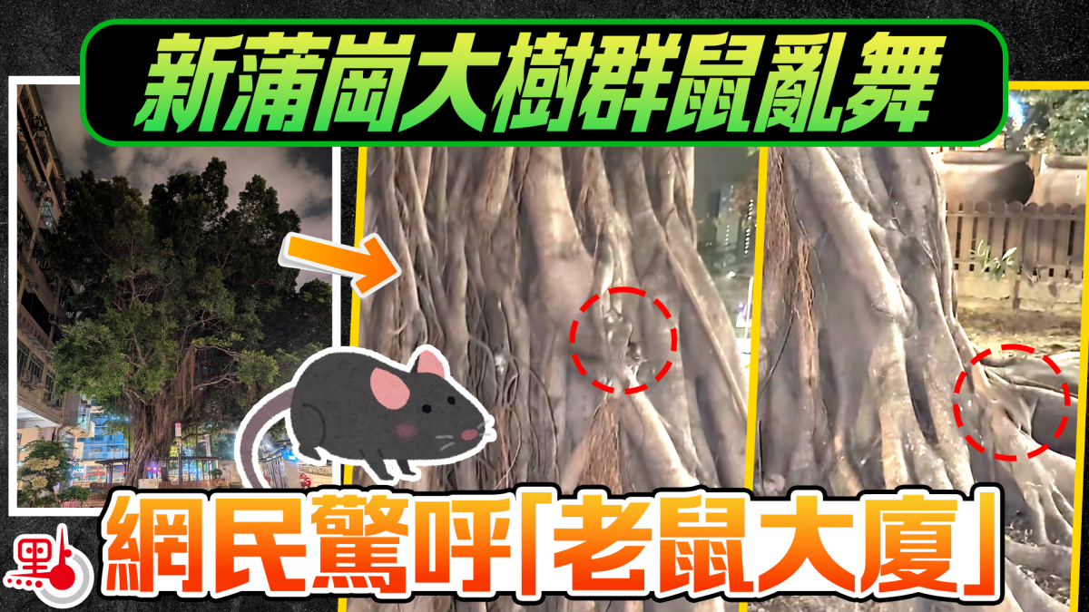 港男驚呼,「鼠患…… ,我懷疑呢棵大樹可能有超過100隻老鼠喺上面住緊」,從其上傳的影片中可見,現場至少有五、六隻體型碩大的老鼠正在樹上敏捷爬行,港男直言,「(老鼠)爬到上頂喔」。