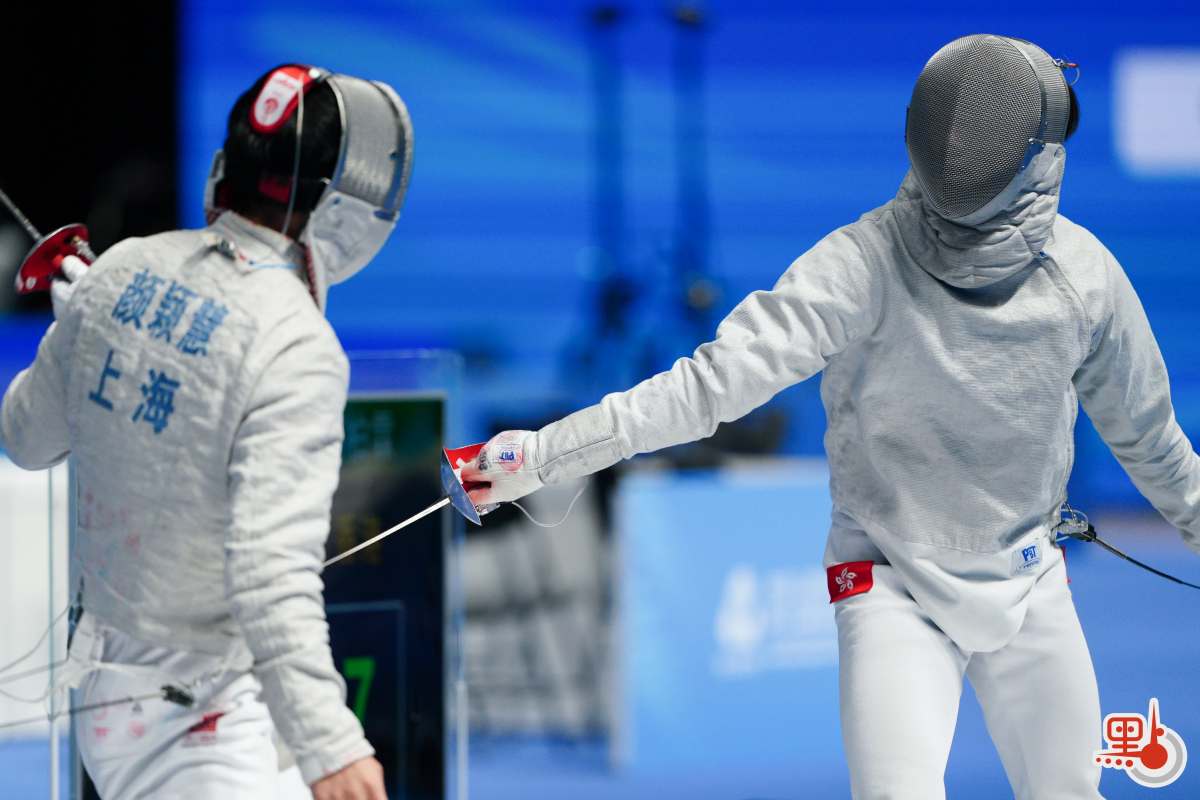 由何思朗、何柏霖、陳樂熹和羅浩天組成的男子佩劍港隊,以3號種子身份出戰。在個人賽奪銀的何思朗打頭陣,惟首局未算順利,被對方連續得分,0∶5落後。不過何柏霖和陳樂熹及後聯手收窄差距,一度為港隊追成12∶12收復失地。然而上海隨後靠朱子皓和張博再次建立優勢,中段拉開25∶20。雖然陳樂熹之後曾經連取5分再次追平,但未幾又被對手重奪領先。港隊在末段欲追無果,最終以35∶45告負,無緣4強。