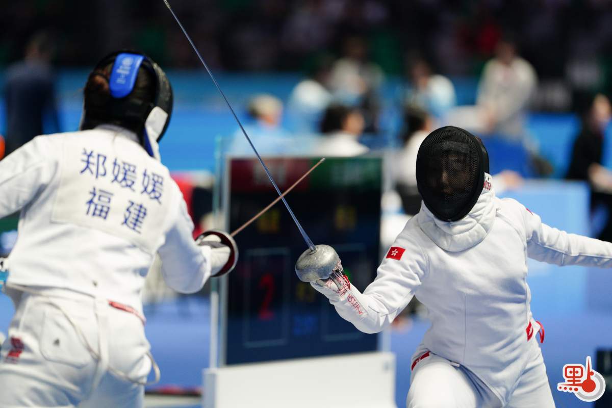 【點新聞報道】全運會劍擊女子重劍團體賽今日(18日)舉行,港隊對陣福建隊力爭決賽席位。香港選手佘繕妡首局領先3∶2,大大鼓舞港隊士氣。其後,福建隊奪回優勢,港隊維持落後2分。佘繕妡與福建選手林聲第6局交手。其後,16歲小將吳海諦第7局後備入替,但同樣未能追近比分。