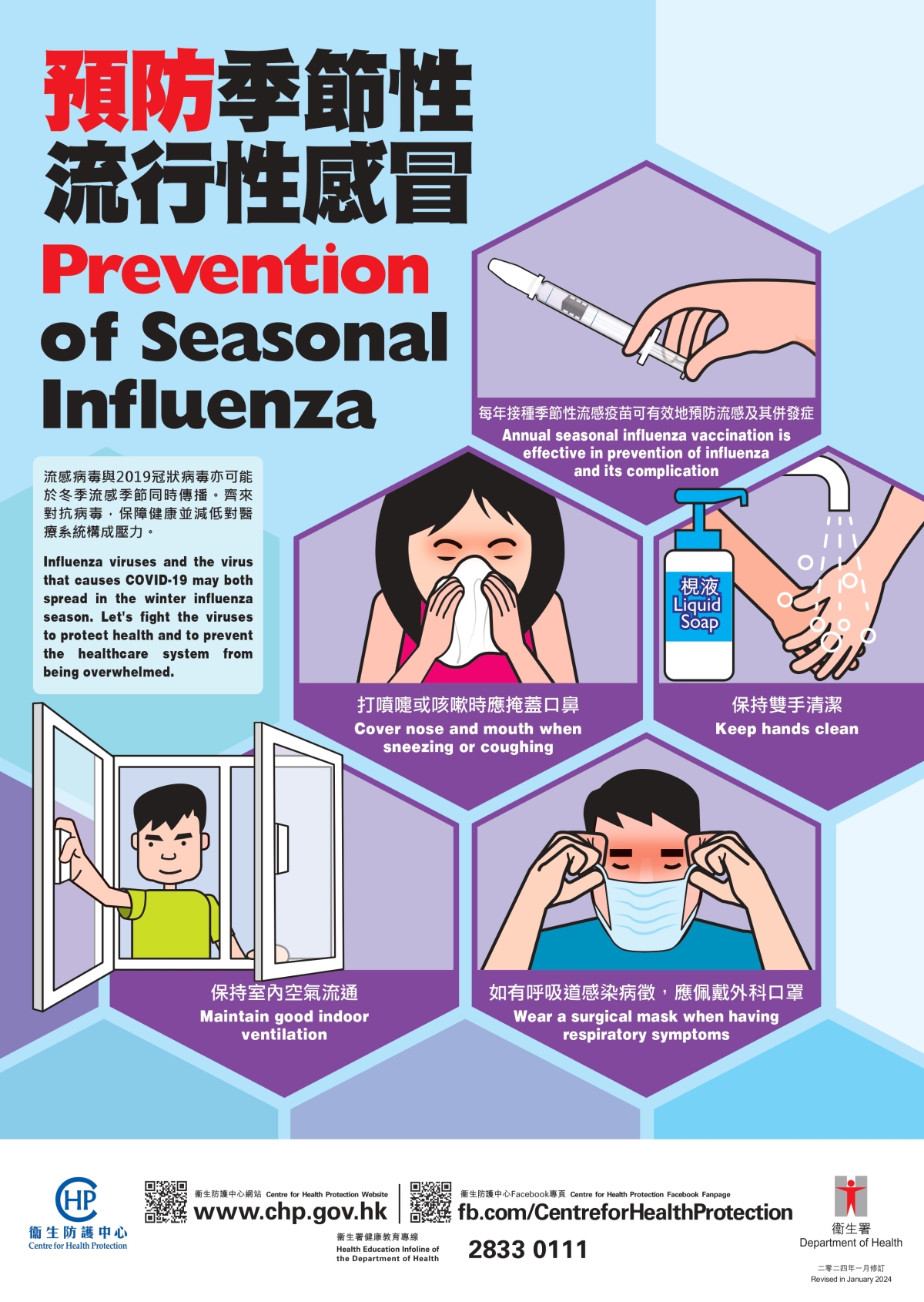 【點新聞報道】衞生署衞生防護中心今日(11月18日)接獲1宗兒童感染季節性流感的嚴重個案,再次敦促學校和家長盡快安排學童和子女免費接種季節性流感疫苗,因為接種流感疫苗是最有效預防流感及其併發症的方法之一,亦可減低重症及死亡的風險。