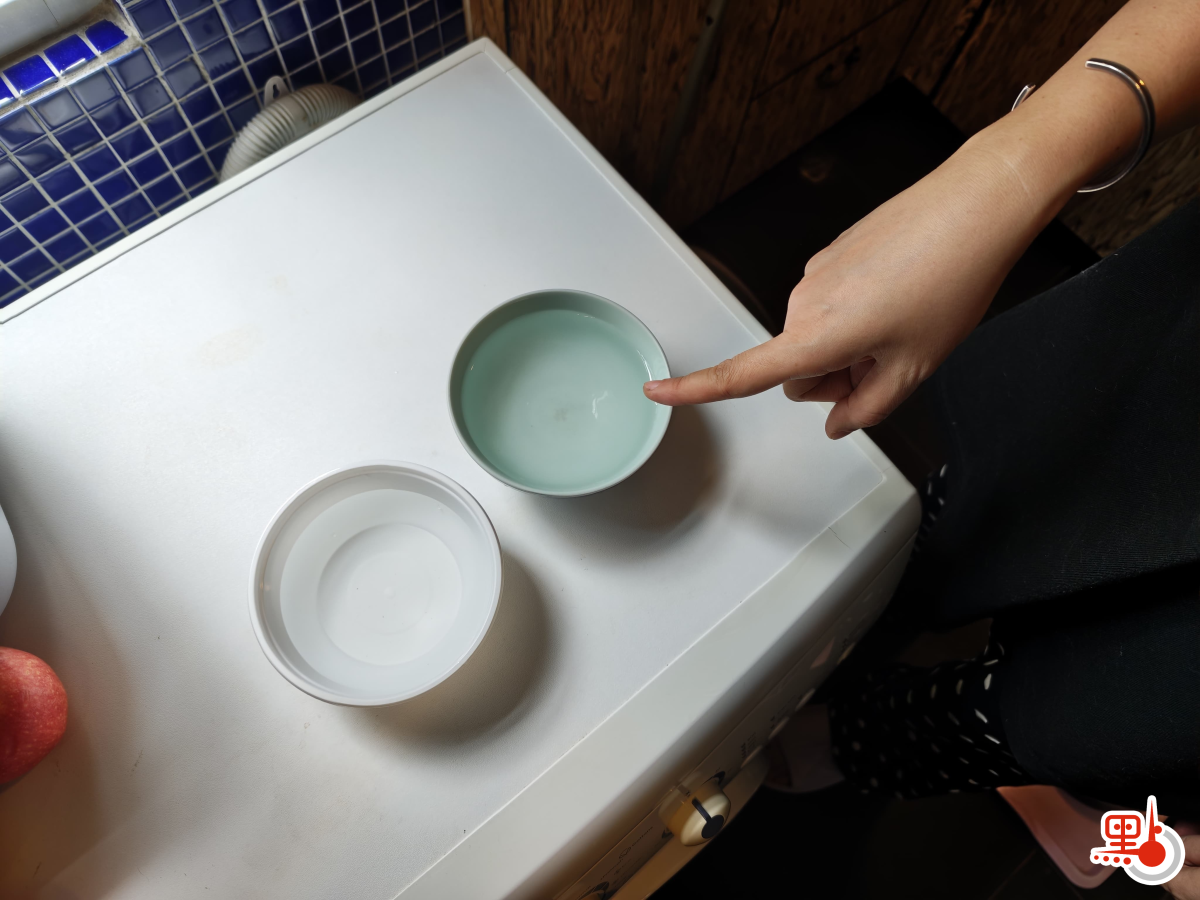 海光街漢威大廈離太古城有近一公里的直線距離,住在這裏的霍女士自前日起就備受食水內出現「黑點」問題困擾。她在家中現場接水向點新聞記者作演示,針尖大小的黑色物質在水中隱約可見。她還用兩碗不同時間所接食水作對比:10分鐘前接的水「黑點」數量較多,而2分鐘前接的水雖較清澈,但雜質未消。霍女士回憶,「黑點」出現初期「似沙石咁大」。這兩天問題雖有所改善,但她已不敢直接使用自來水。