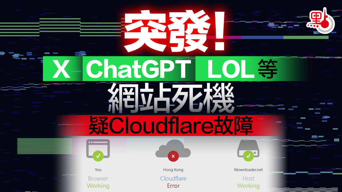 【點新聞報道】今晚(18日),全球多個知名網站與服務無預警出現大規模中斷,包括社群平台X(前身為Twitter)、人工智能應用ChatGPT,以及熱門線上遊戲《英雄聯盟》(LOL)等,皆傳出用戶無法順利連線的狀況。據外媒報道,此次故障可能與網絡服務供應商Cloudflare內部伺服器錯誤有關。
