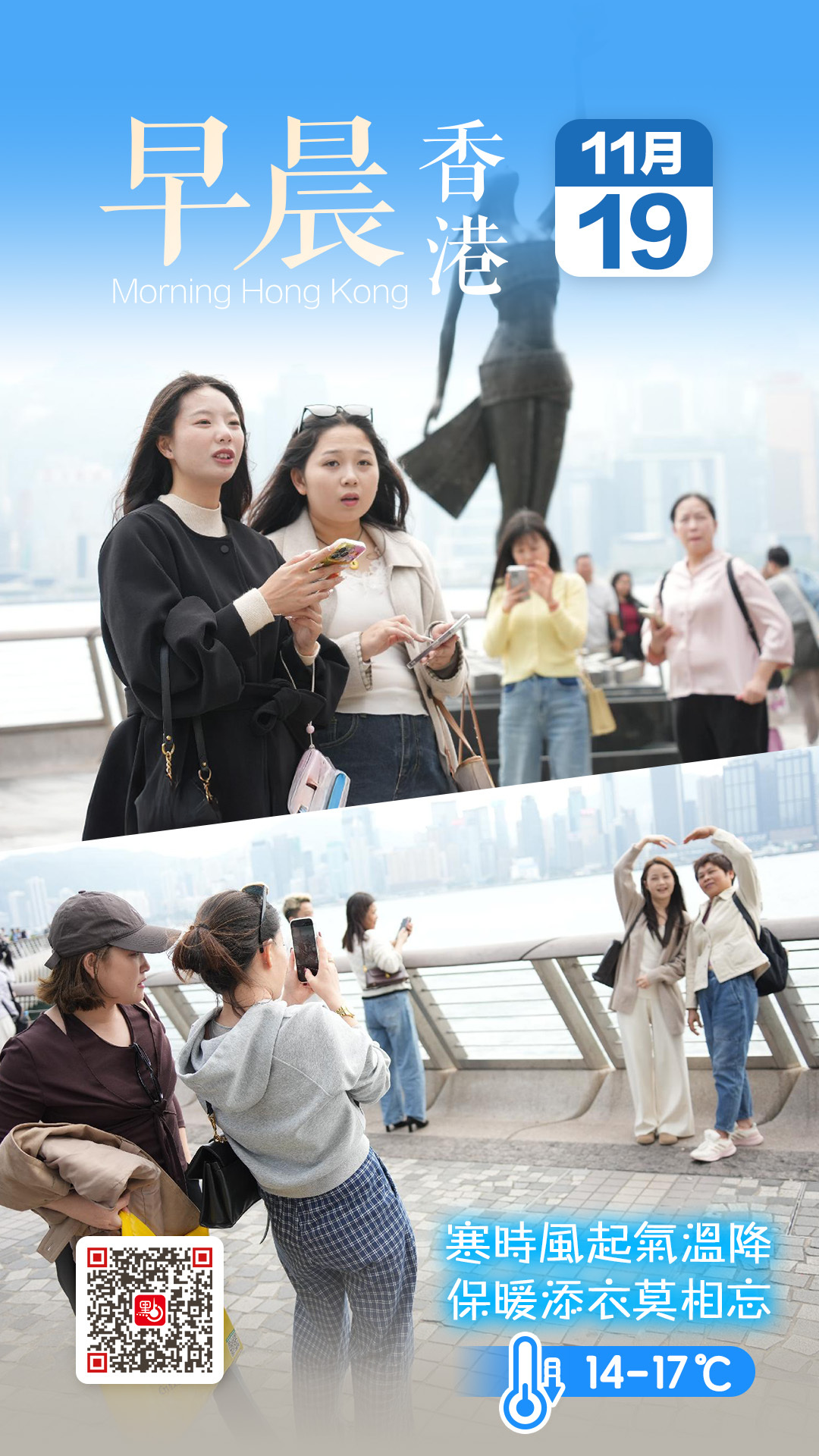 【點新聞報道】受強烈東北季候風影響,今早(19日)本港市區氣溫降至約14度,新界部分地區更為寒冷,加上風勢頗大,風寒效應顯著。點新聞溫馨提示「寒時風起氣溫降,保暖添衣莫相忘」。