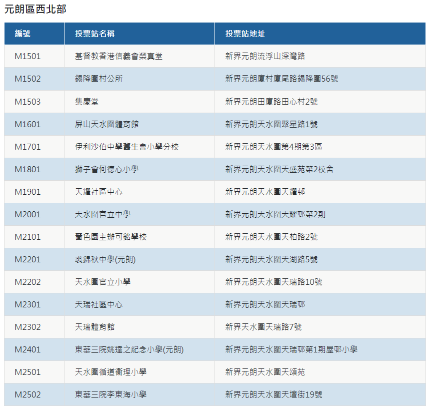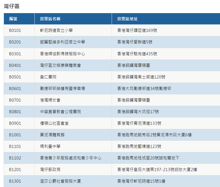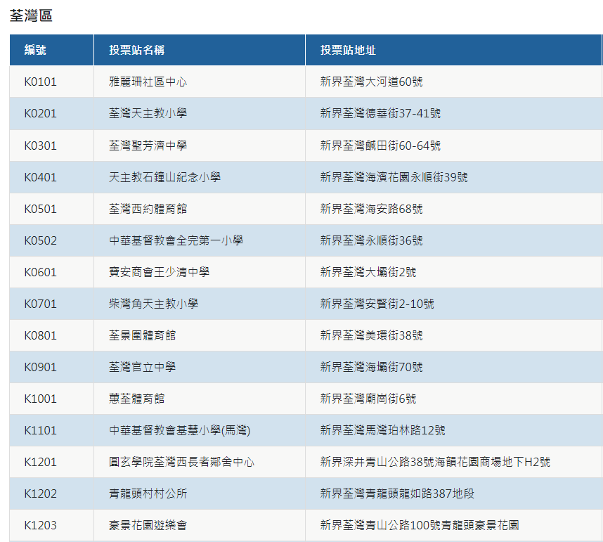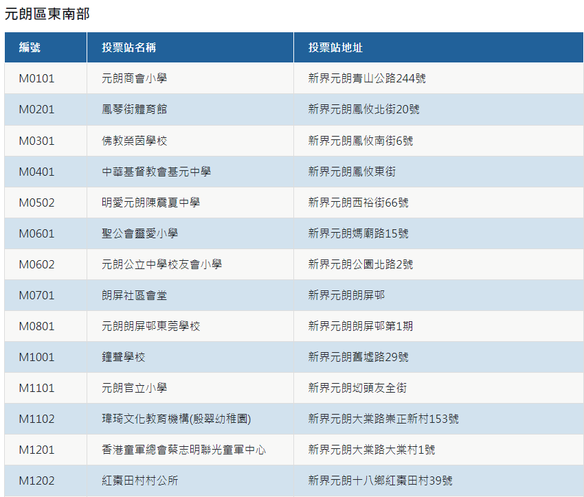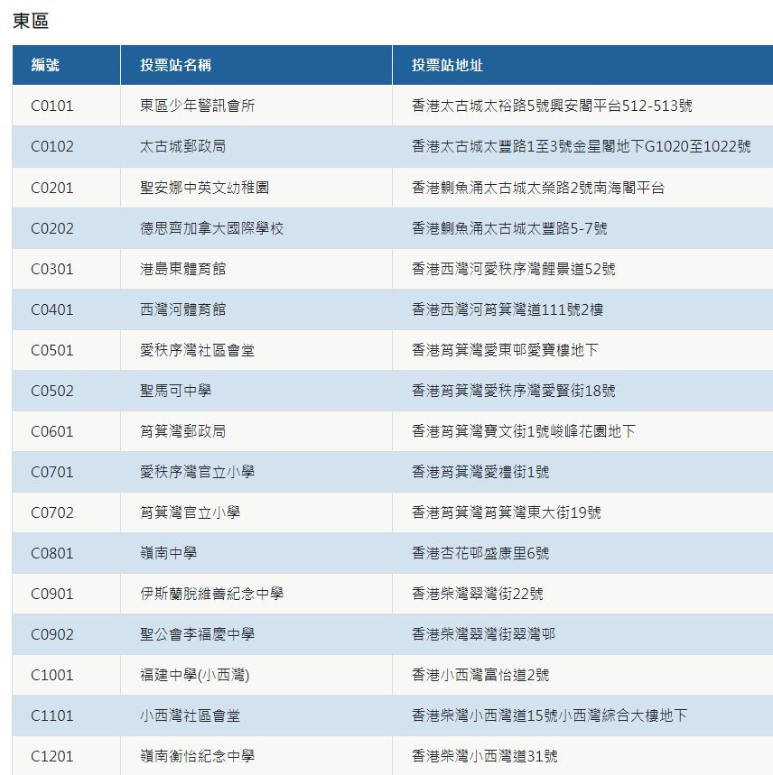 【點新聞報道】香港第八屆立法會選舉定於12月7日(星期日)舉行,161名候選人競逐90個議席,當中10個地方選區共有51人競逐20個議席。今次立法會選舉投票將設立615個一般投票站,設於學校、地區及政府設施場地。想知道自己可以去邊度投票?(點此可查詢前往哪個投票站投票)點新聞為讀者整理了10個地方選區的票站分布,供大家一文睇清!