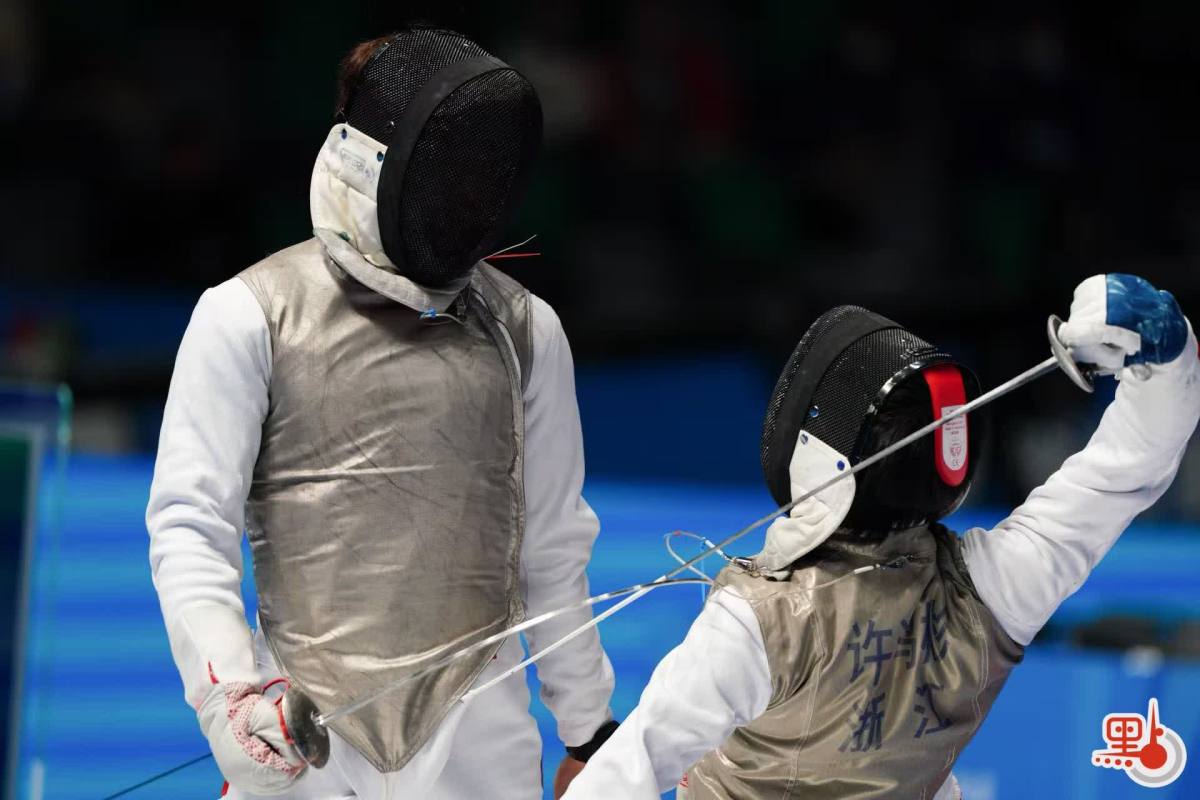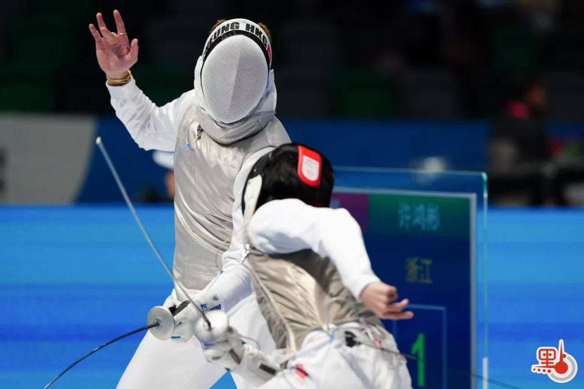 港隊今日中午1時30分對戰浙江隊。張家朗首局以5-3領先,蔡俊彥其後穩住優勢。雖然梁千雨在第三局被反超,但張家朗第四局強勢打出7-4重新奪回領先。吳諾弘後備上場頂住壓力,蔡俊彥接着拉開4分差距,港隊之後牢牢守住優勢,最終由蔡俊彥在決勝局以5-4險勝,全場45∶38擊敗對手,成功晉級四強。