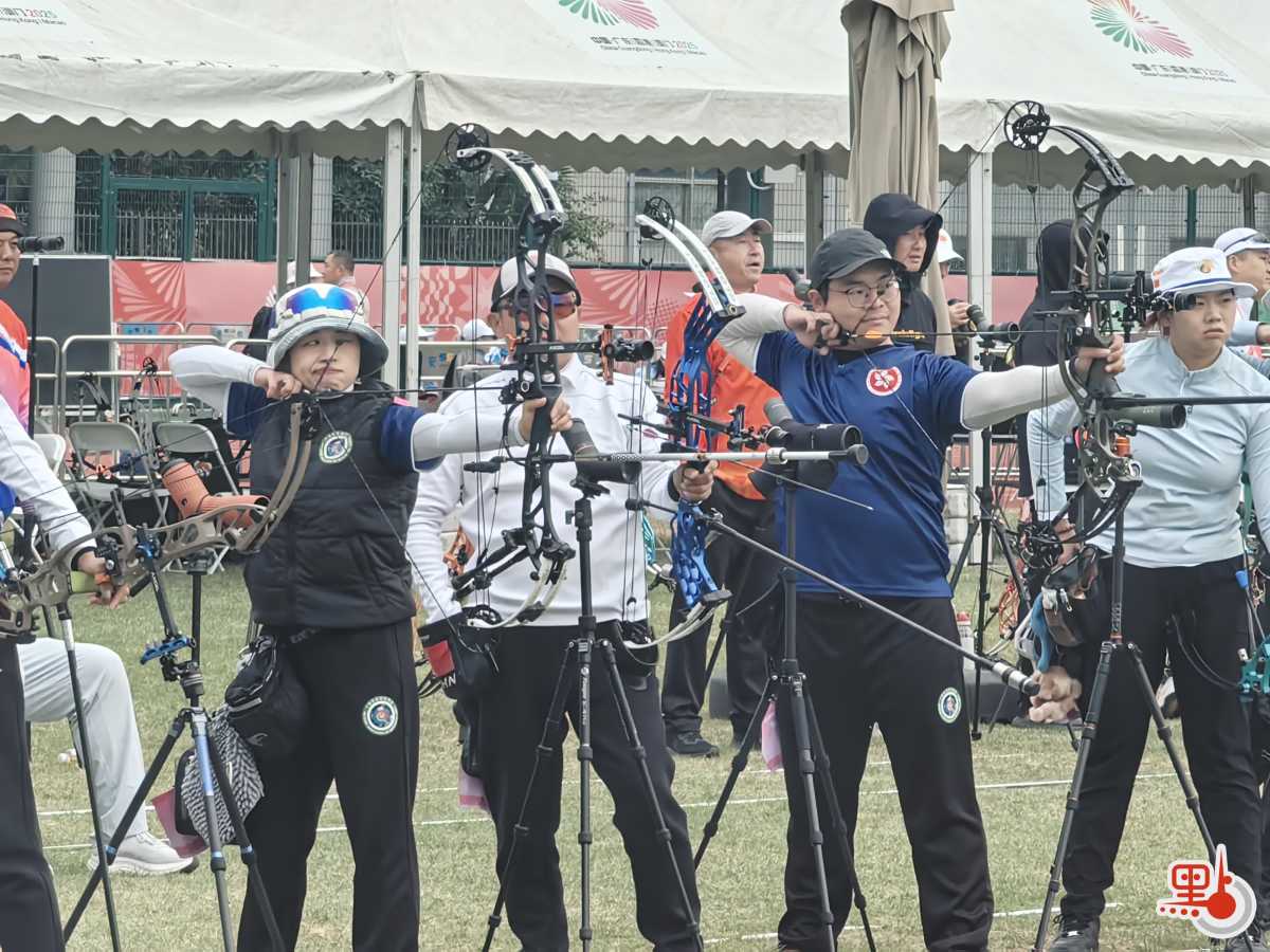 【點新聞報道】11月19日,第十五屆全運會射箭項目複合弓混合團體賽在賽場拉開戰幕。香港隊組合陸國恒、鄭鴻婷攜手登場,首輪排名賽(初賽)結束後,香港隊進入16強,爭奪晉級資格。