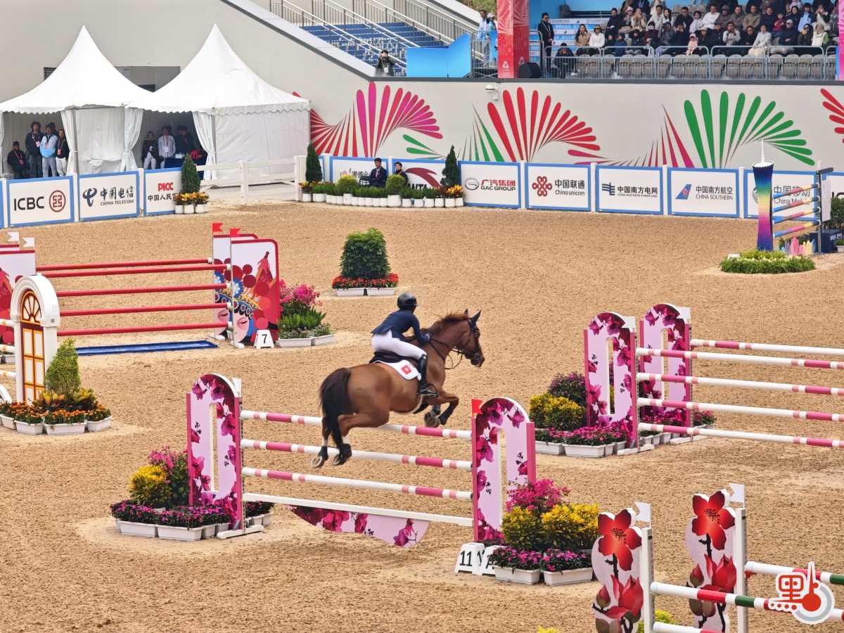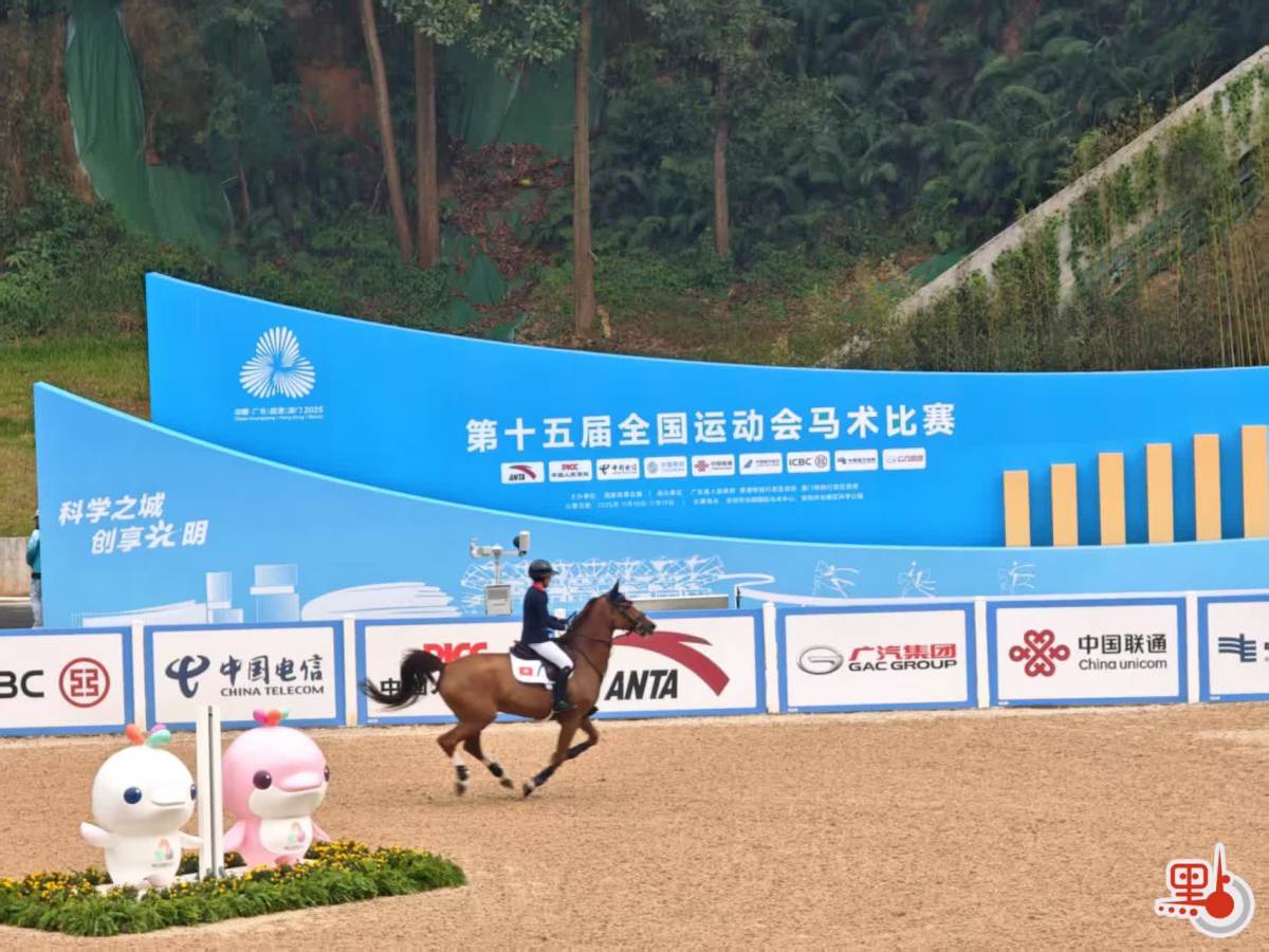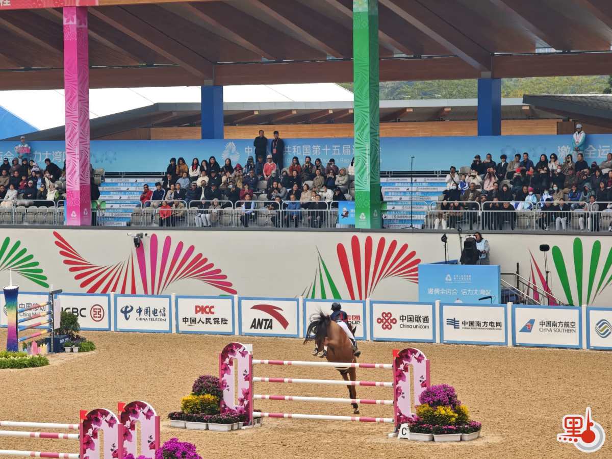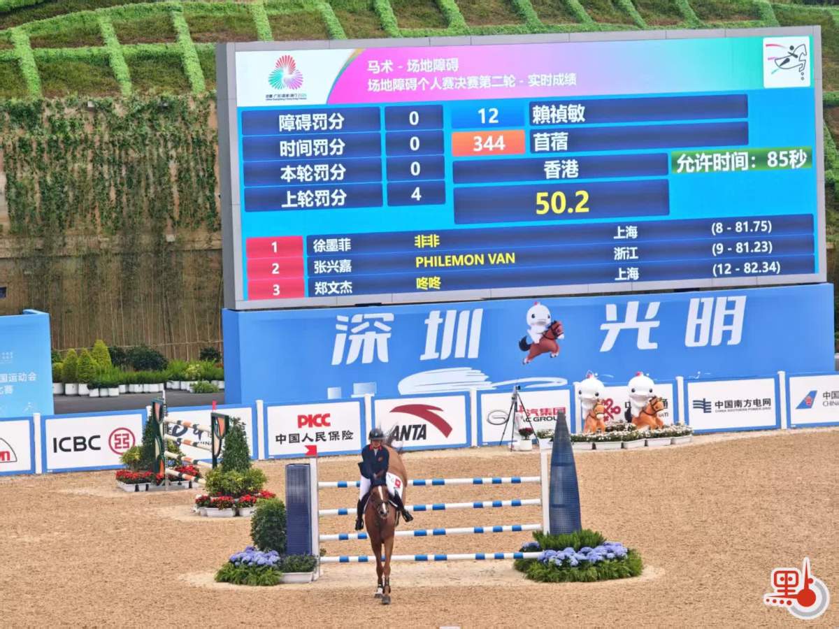【點新聞報道】11月19日下午,十五運馬術項目場地障礙個人賽決賽第二輪,港隊賴楨敏罰分為4,加上上午場的4分罰分,以總罰分8分,與來自上海的選手徐墨菲、山東選手張勇並列第三,進入附加賽。
