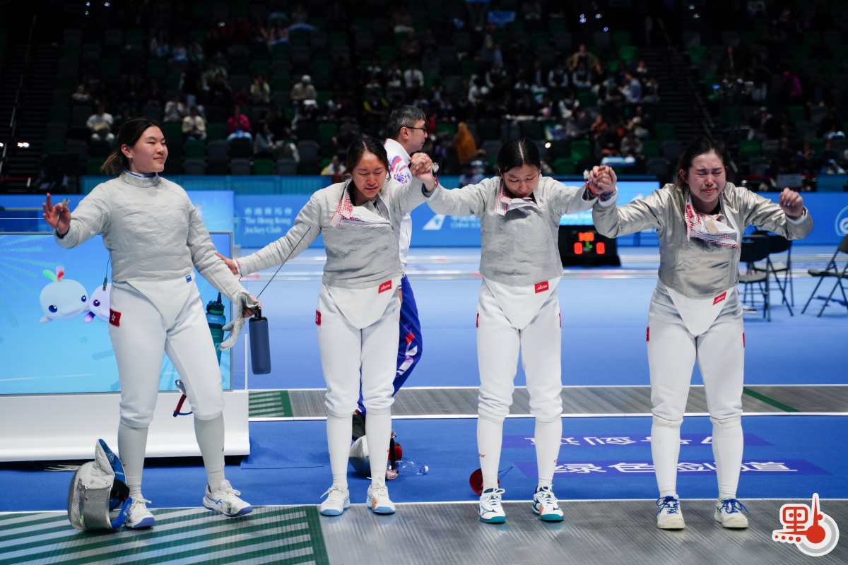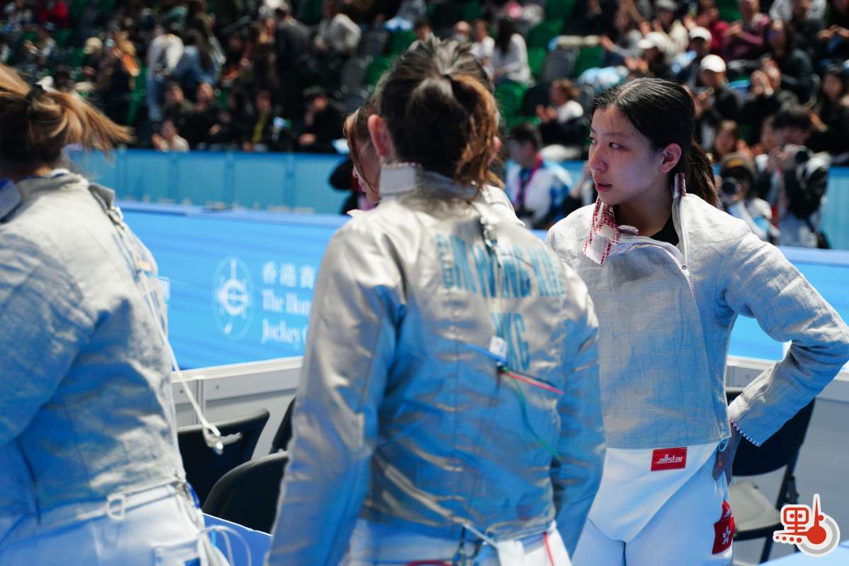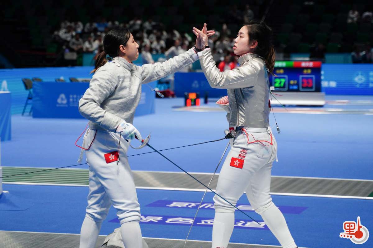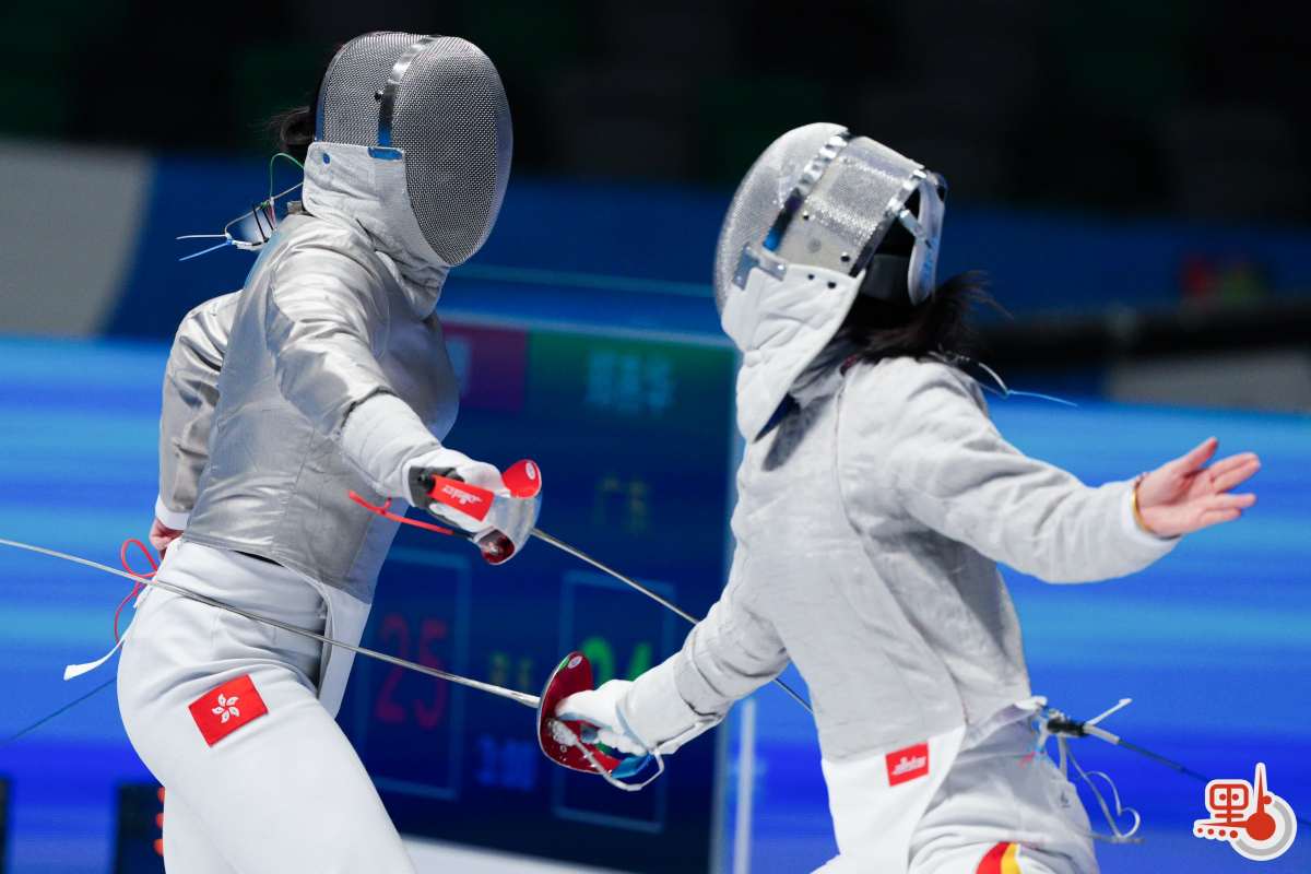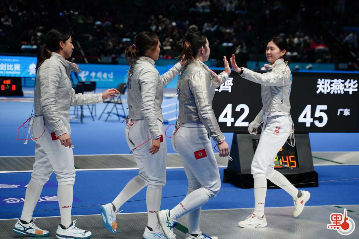 【點新聞報道】第十五屆全國運動會劍擊賽事今日(19日)繼續進行,於啟德體藝館上演男子花劍及女子佩劍團體賽。由薛雅齊、朱詠翹、梁洛文及劉綺程組成的女佩港隊被列為6號種子,8強賽迎戰3號種子廣東隊。港隊在主場觀眾支持下打出氣勢,一直領先至第七局,惟在最後兩局遭對手逆轉,最終以42∶45吞敗,無緣4強。