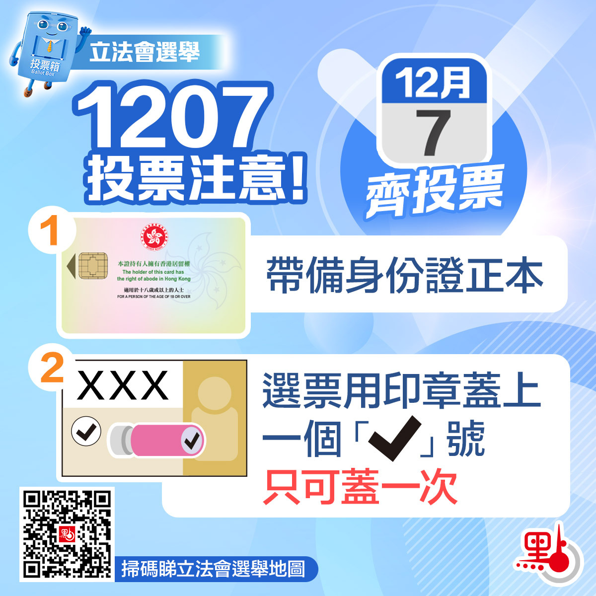 【點新聞報道】立法會換屆選舉將於12月7日舉行,選民須按投票通知卡或經「智方便」得到的資訊,到指定投票站,出示身份證,經核實身份獲發選票。有需要人士可使用特別隊伍。