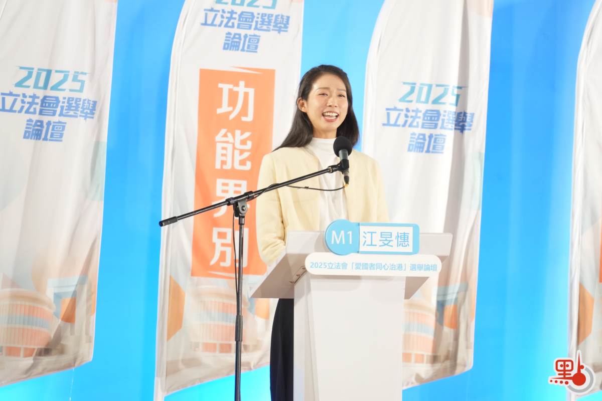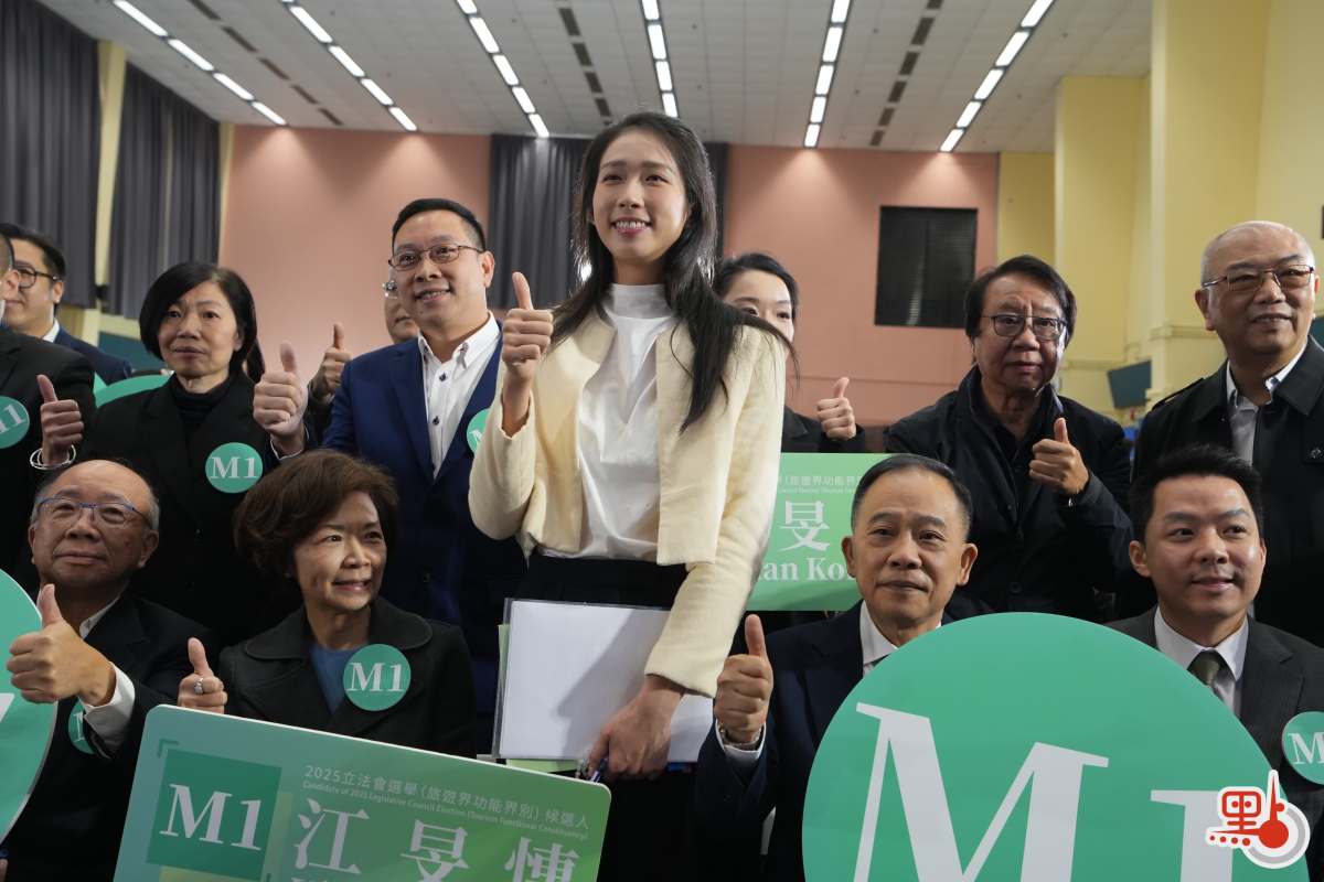 候選人江旻憓表示,以前做運動員時,家人心疼她受傷,但自己總是不忿氣,想贏一次。香港培養了她,而她的使命和責任是代表香港爭勝。巴黎奧運結束後,她開始反思什麼是贏。她認為,真正的贏是同大家一齊贏,更好地延續體育精神,這是她服務香港的初心。江旻憓希望能將奧運冠軍帶來的公眾影響力轉化為建設香港的力量,為業界發聲,合作共贏。