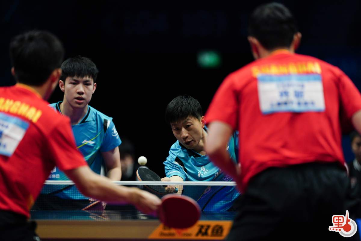 第一盤男雙比賽,由北京隊的黃友政/馬龍迎戰上海隊的許昕/周愷。北京隊組合以3-1贏了第一盤。