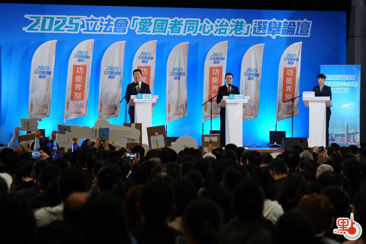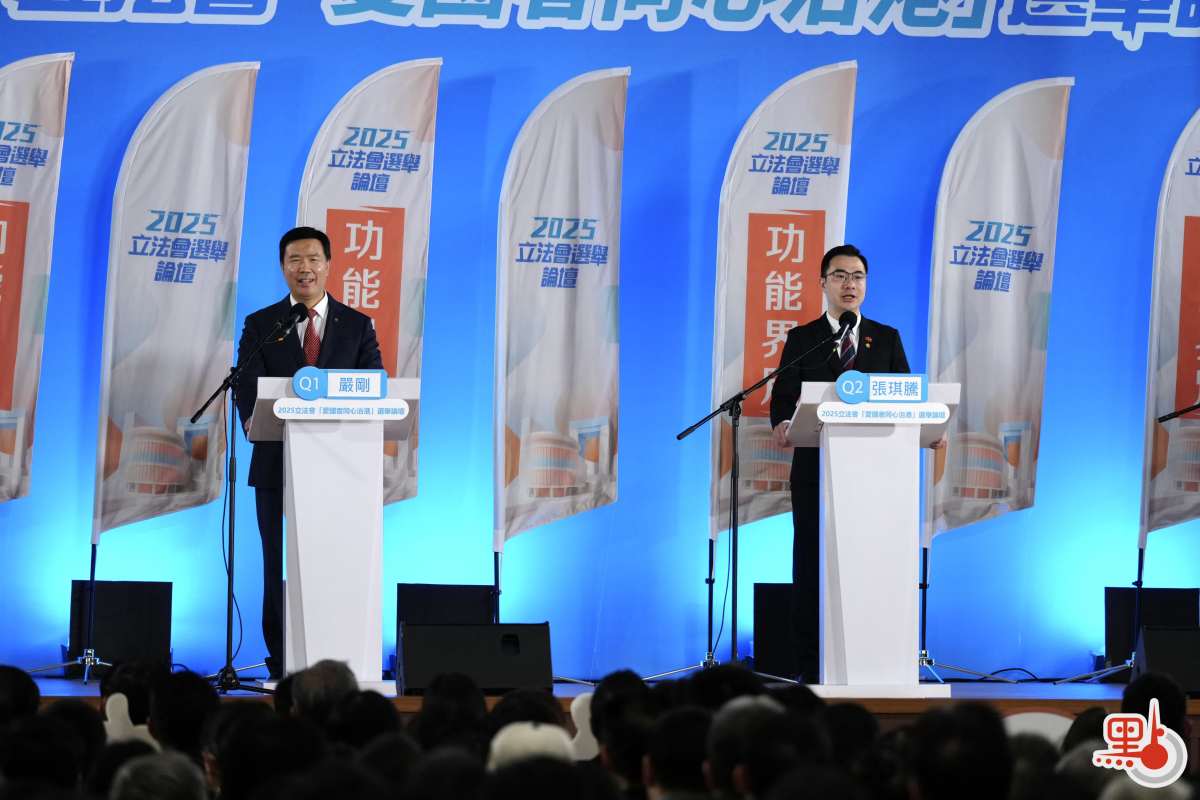【點新聞報道】新一屆立法會選舉投票將於12月7日舉行。2025立法會「愛國者同心治港」功能界別商界(第三)選舉論壇於今日(22日)上午舉行,Q1號候選人嚴剛和Q2號候選人張琪騰圍繞個人政綱,以及「優化跨境交通運輸網絡」、「吸引海內外醫療人才來港」、「非物質文化遺產保育」等議題展開討論。現場座無虛席,雙方助選團都懷抱對選舉的極大熱忱為候選人打氣,現場氣氛熱烈非凡。