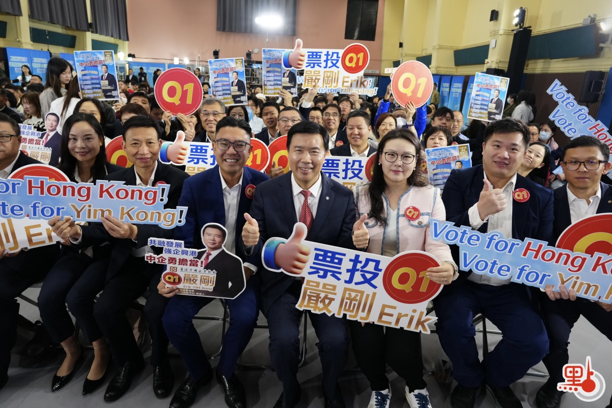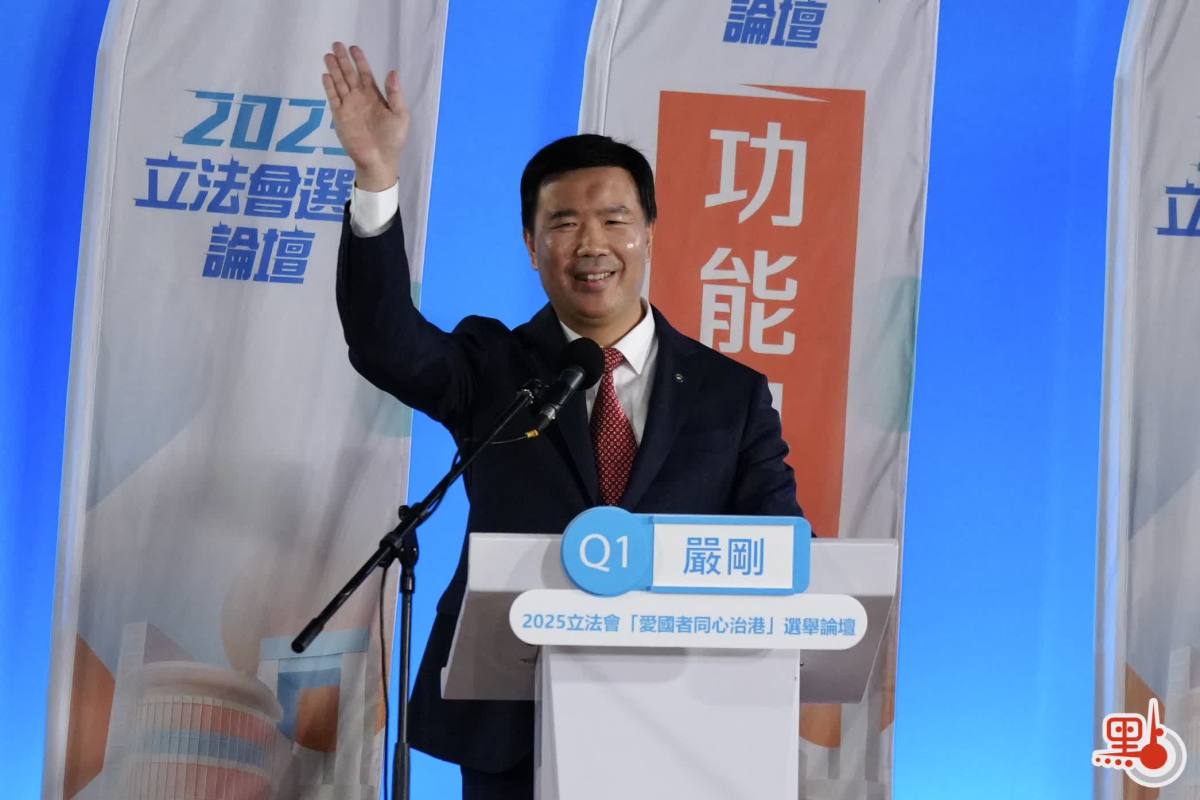 Q1號候選人嚴剛表示,他作為中資企業資深管理者,長期扎根香港,見證了香港回歸以來的點滴變化。他認為,現時香港最緊迫的任務是提升政府效能,促進經濟發展。他呼籲中資作為重要持份者,要繼續投資、服務香港,加快香港由治及興的步伐。嚴剛的競選口號是「共融發展,強企興港,中企勇擔當」,他的政綱包括多元協同、創新發展、溫暖民生、區域協作、拓展海外在內的五大橋樑,以中企所長服務香港所需,推動香港更好地融入國家發展大局。