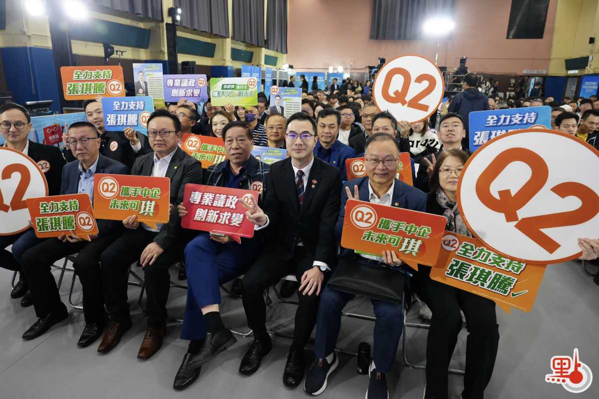 Q2號候選人張琪騰指出,此次參選屬自我挑戰,亦回應了其服務社會的志向和初心。他26歲以民選區議員身份開始服務社區居民,重視社區需求和市民意見,以民為本。張琪騰提出,設立中企三大篇章,十大政綱,涵蓋對接「十五五」規劃,推動將北都納入「十五五」規劃以服務國家需要,持續優化上市融資制度,鞏固香港國際金融中心地位,護航中企出海,打造國際產業鏈,培養建港人才等等。若進入立法會,他的工作綱要是「拚經濟,惠民生,攜手中企創未來」。