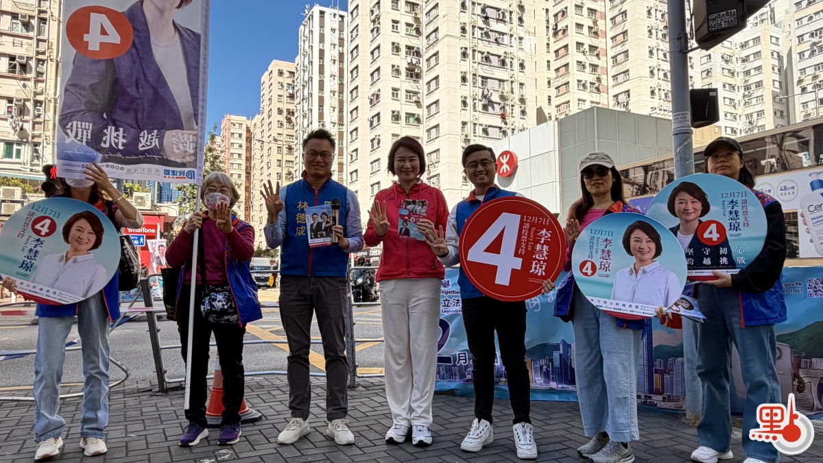 【點新聞報道】新選制下的第八屆立法會選舉中,九龍中地方選區共有6位候選人競逐兩席位,成為地區直選中選情最激烈的選區。今日(22日),6位候選人齊聚黃埔造勢,包括1號李超宇(經民聯)、2號楊諾軒、3號楊永杰、4號李慧琼(民建聯)、5號丘燿誠(工聯會)及6號譚莉儀。