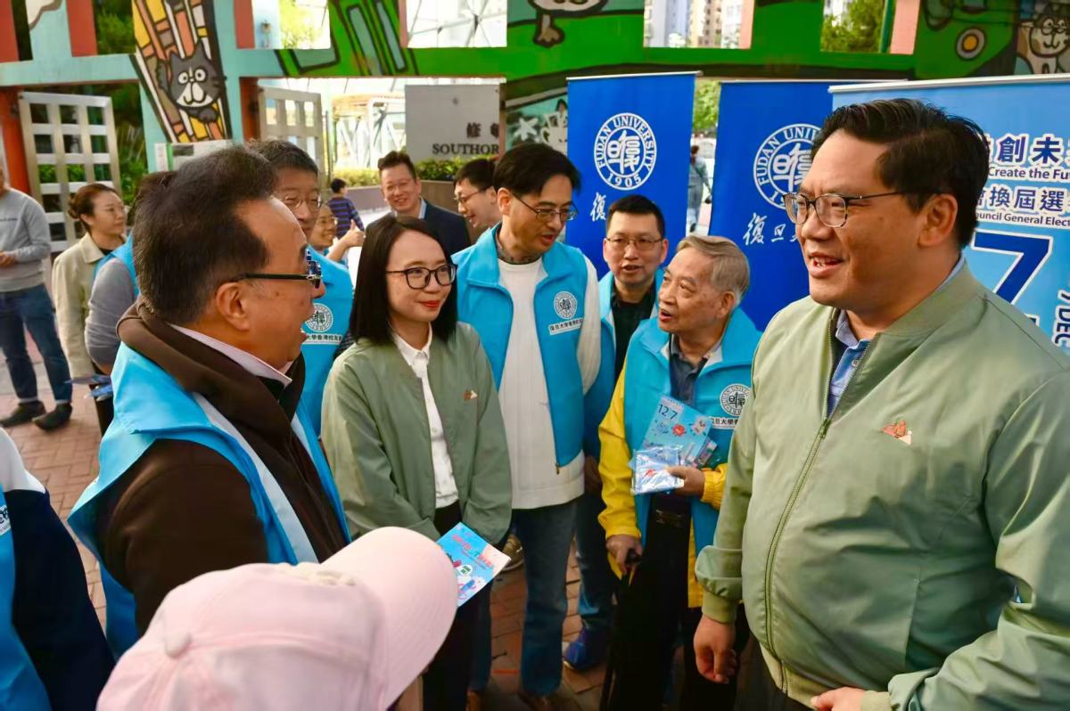全國政協委員、復旦大學香港校友會會長屠海鳴表示,復旦大學香港校友會是一個愛國愛港的新興組織,校友骨幹們匯聚灣仔,自覺派發12月7日香港第八屆立法會選舉宣傳單張,呼籲選民為香港發展經濟、提升民生,踴躍投下神聖的一票。