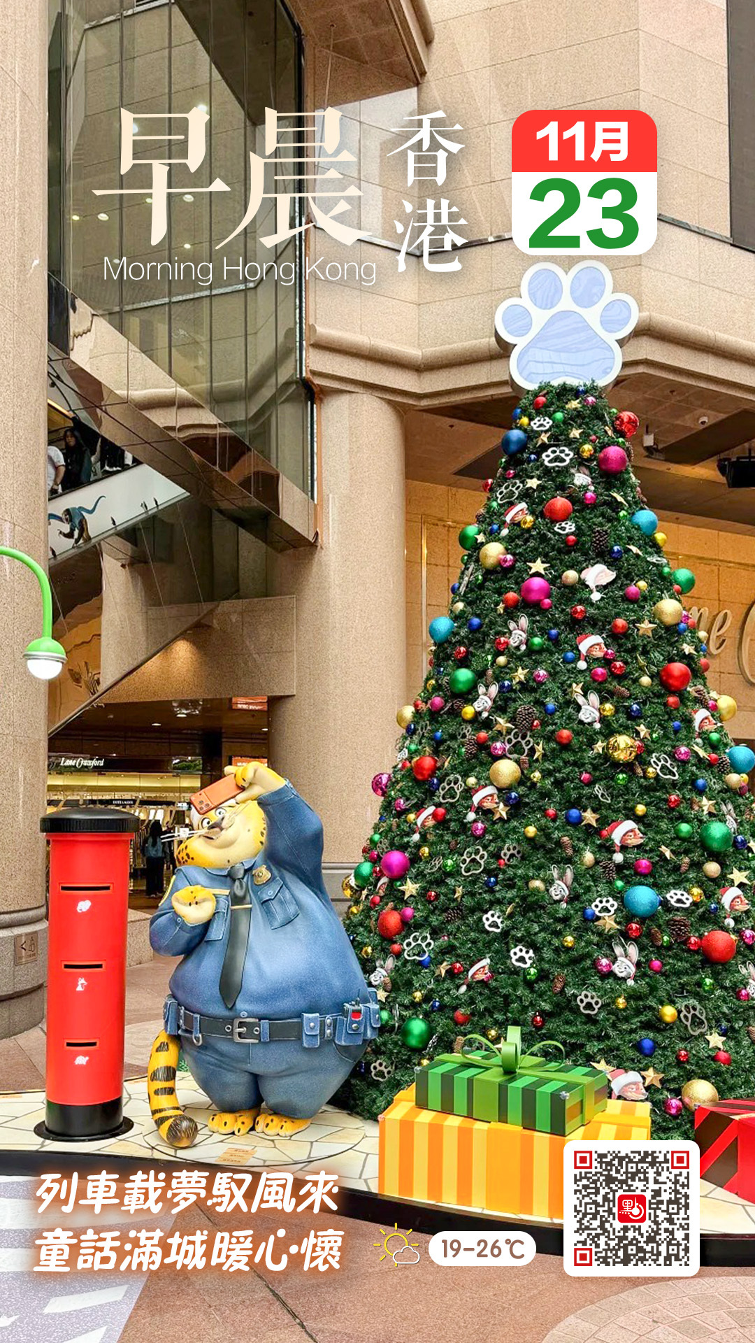 【點新聞報道】銅鑼灣時代廣場即日起至2026年1月4日,以迪士尼《優獸大都會2》為主題,打造「Zootopia 2:Zoo-tastic Celebration」活動,帶你走進繽紛熱鬧的「優獸市」。阿力Nick、朱迪Judy與多位角色將以1比1人偶造型登場,配合多個電影經典場景、璀璨節日燈飾以及4.8米高聖誕樹,營造濃濃佳節氛圍。點新聞今日(23日)帶你直擊現場,一同感受這個冬日魔法世界!