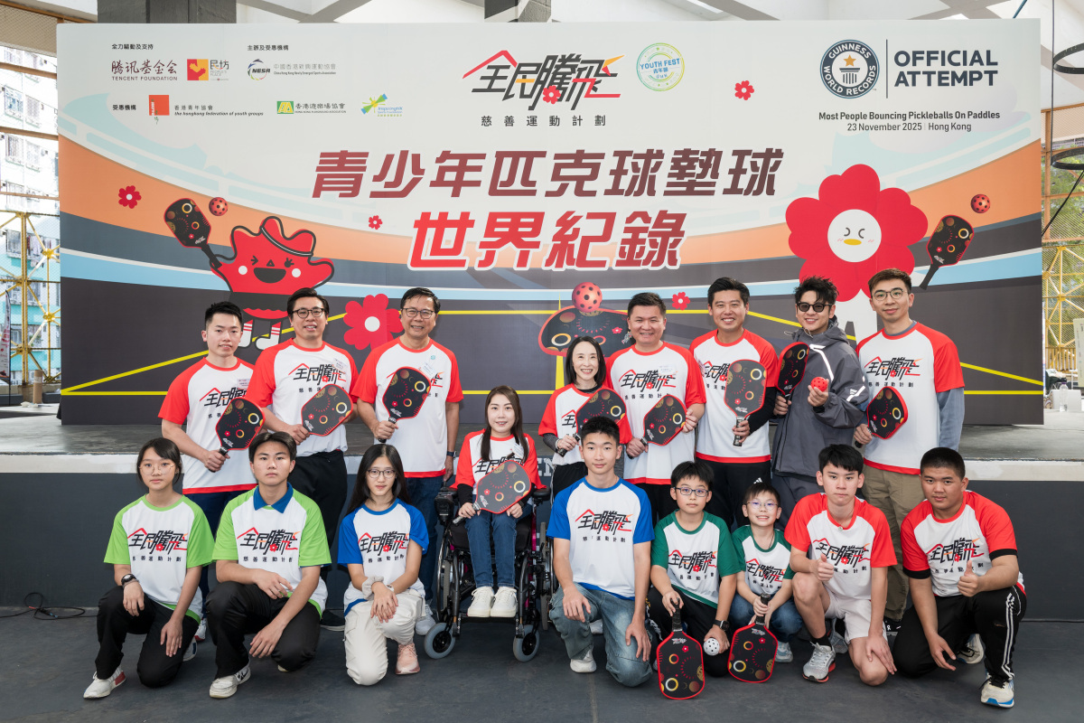 健力士世界紀錄最終確認大會,成功創造「最多人同時在匹克球拍上墊球」的健力士世界紀錄ᵀᴹ榮譽,實證本地青年團結一致的驕人成就。是次活動不僅強化了社區的凝聚力,更體現香港青年團結拚搏的精神,為共同目標齊心奮鬥。