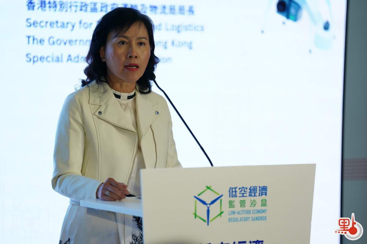 陳美寶表示,今年3月啟動的低空經濟監管沙盒中的38個項目正逐一落地,其中29個項目正推動和落地。具體項目而言,例如數碼港至長洲的醫療物資無人機配送僅需18分鐘,較水路節省45分鐘。港鐵亦利用夜間兩小時派無人機監測隧道設施,同時無人機亦有用於建築外牆清潔與檢查。另外,本地科研團隊研發的衛星導航反制無人機防禦系統正申請專利。
