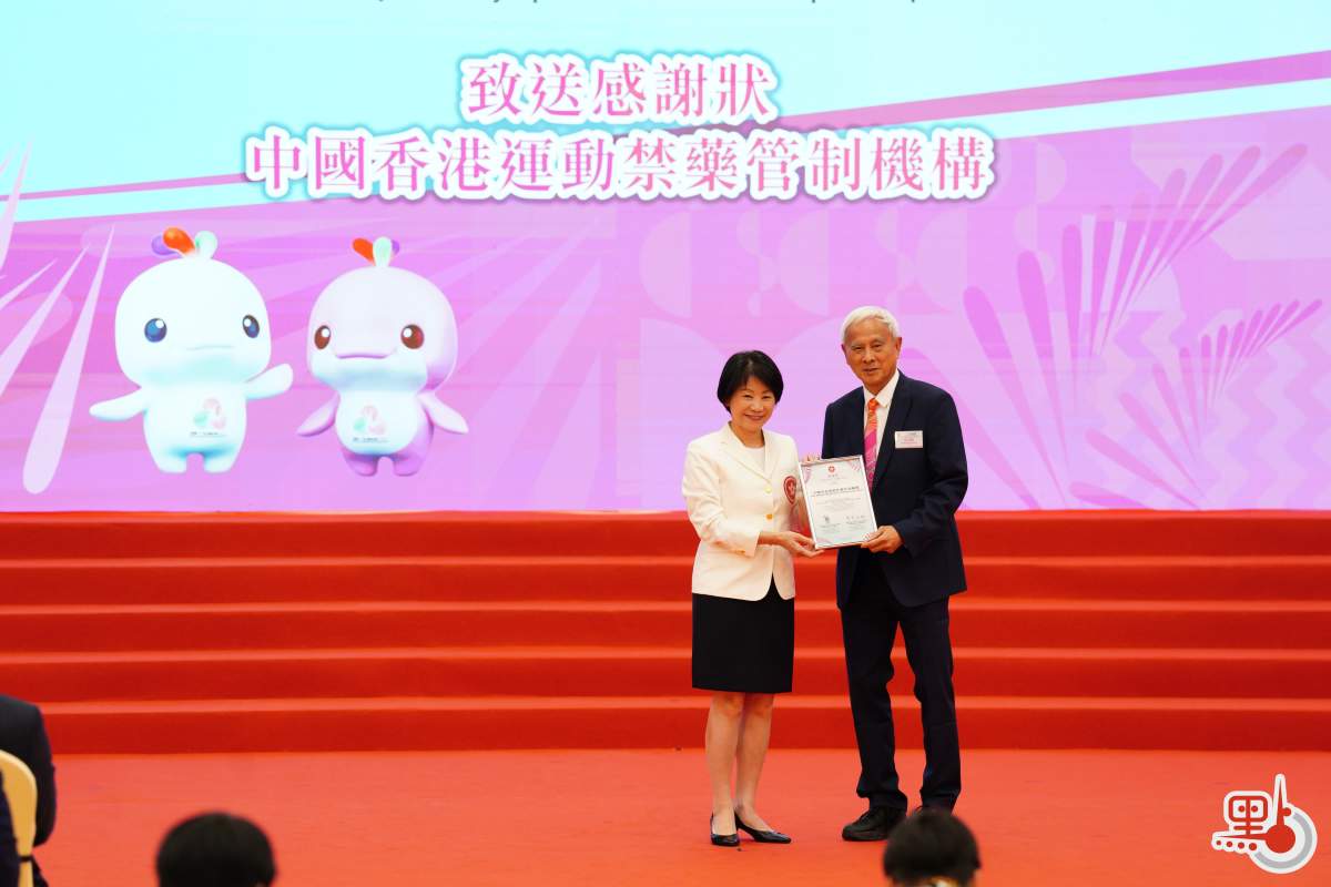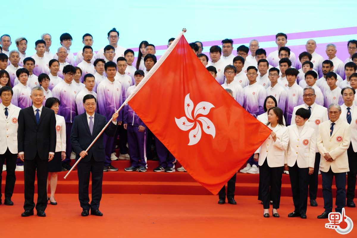 行政長官李家超主持授旗儀式,文化體育及旅遊局(文體旅局)局長兼香港特區代表團團長羅淑佩代表接受特區區旗。