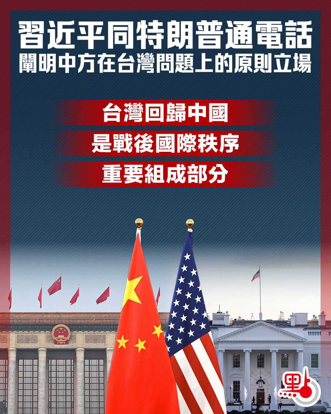 習近平闡明了中方在台灣問題上的原則立場,強調台灣回歸中國是戰後國際秩序重要組成部分。中美曾並肩抗擊法西斯和軍國主義,當前更應該共同維護好二戰勝利成果。