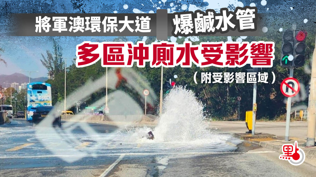 水務署在社交平台表示,署方經了解後確認涉事水管為一條直徑900毫米的鹹水供水管,用作供應沖廁水予日出康城、將軍澳工業邨、石角路一帶、百勝角路一帶、以及清水灣半島。將軍澳南及調景嶺地區可能會出現水弱情況。目前,環保大道北行中線及快線封閉,以配合緊急水管維修工程。駕駛人士仍可使用慢線前往將軍澳及九龍方向,而右轉前往百勝角路的車輛須繞行昭信路迴旋處掉頭並沿環保大道南行左轉進入昭信路。