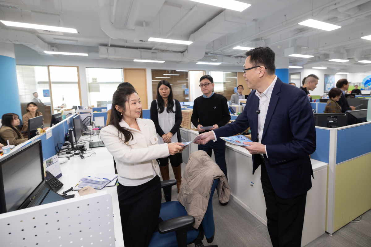 【點新聞報道】創新科技及工業局局長孫東、常任秘書長蔡傑銘、數字政策專員黃志光等今日(25日)親臨數碼港,與數碼港主席陳細明、行政總裁鄭松岩及相關管理層一同出席第八屆立法會換屆選舉宣傳活動,鼓勵數碼港員工及園區企業代表,在12月7日為香港的未來投下重要一票。