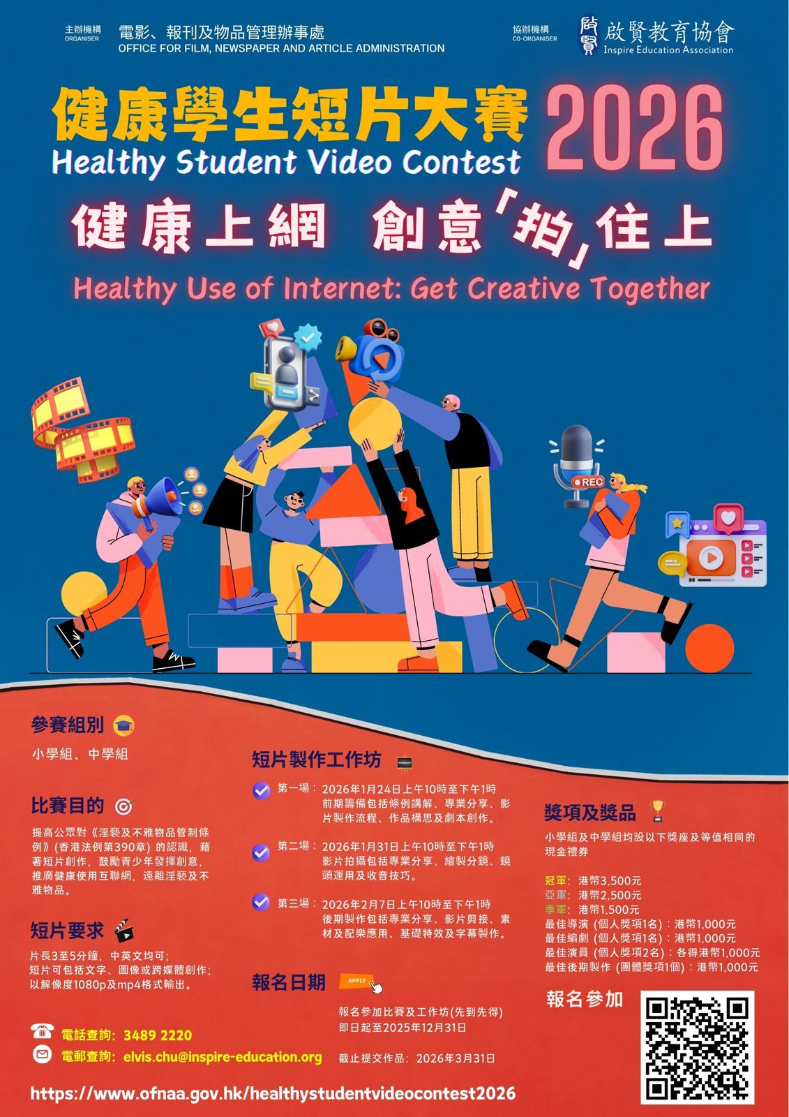 為提高公眾對《淫褻及不雅物品管制條例》(香港法例第390章)的認識,電影、報刊及物品管理辦事處藉助短片創作,鼓勵青少年發揮創意,推廣健康使用互聯網,遠離網絡中的不良資訊。