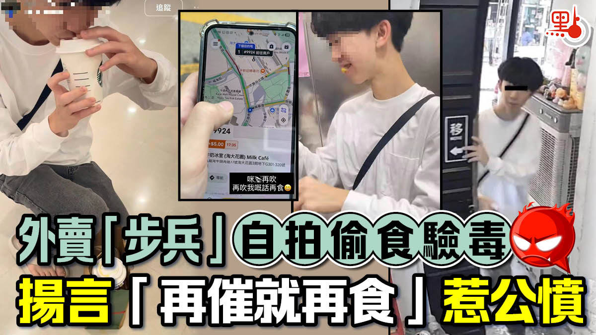 【點新聞報道】近日就有外賣「步兵」在社交平台自爆偷食客人的餐點,揚言要「驗吓啲嘢飲有冇毒先」、「咪X再催,再催我嘅話再食」,引發一眾網民震怒。