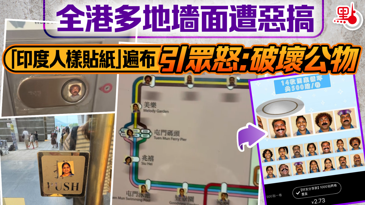 【點新聞報道】社交平台有多名網民分享,指近期全港多處頻出現「印度人樣貼紙」。有人發現原來該批貼紙在內地某網購平台上僅需2.73元人民幣就能購得1000張,因而「遍布街頭隨處都見到」。