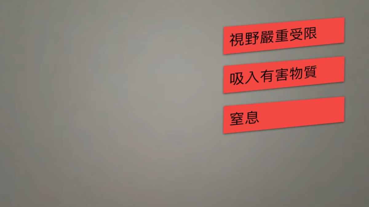 如果大火蔓延迅速,應該迅速進入容易被救援的房間,並找空心管,例如拆掉兩頭的拖把等,伸出窗外用以呼吸。