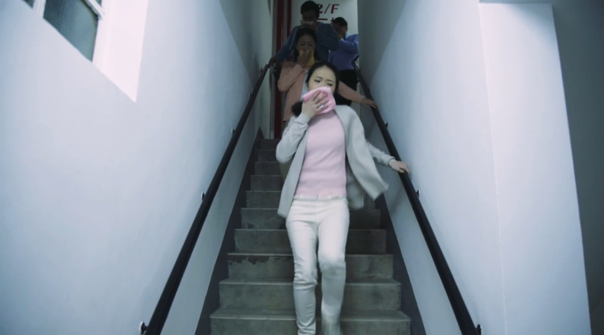 如果遇到樓上樓下都有煙,或已經接近頂樓,且天台的門無法打開,向下又被火勢堵住通道的極端情況,可以嘗試建立多重防火牆自救和等待救援。