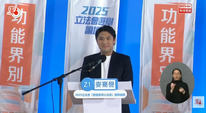 今日(26日)下午,功能界-科技創新界論壇於荔枝角政府合署禮堂舉行,論壇分為政綱介紹、必答環節、抽籤回答及總結四個部分。科技創新界候選人Z1號麥騫譽和Z2號邱達根同台闡述政綱。