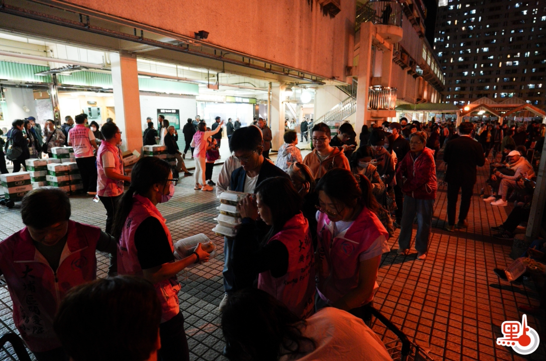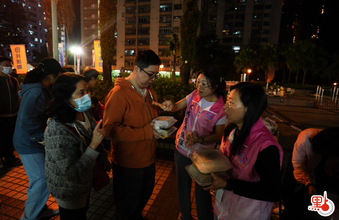 點新聞記者亦看到,有關愛隊在現場為居民發放物資,包括餐食及飲用水,並協助居民進行登記。