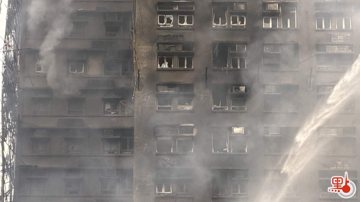 【點新聞報道】大埔宏福苑11月26日下午2時51分發生火警,於下午3時02分升為三級,下午3時34分升為四級,下午6時22分升為五級。火警造成多人傷亡,並有消防人員在執行職務時殉職。截至今日(27日)上午7時許,點新聞記者現場所見,宏福苑火勢已減弱,其中,宏道閣與宏泰閣高層仍有零星火星,外牆燒黑。