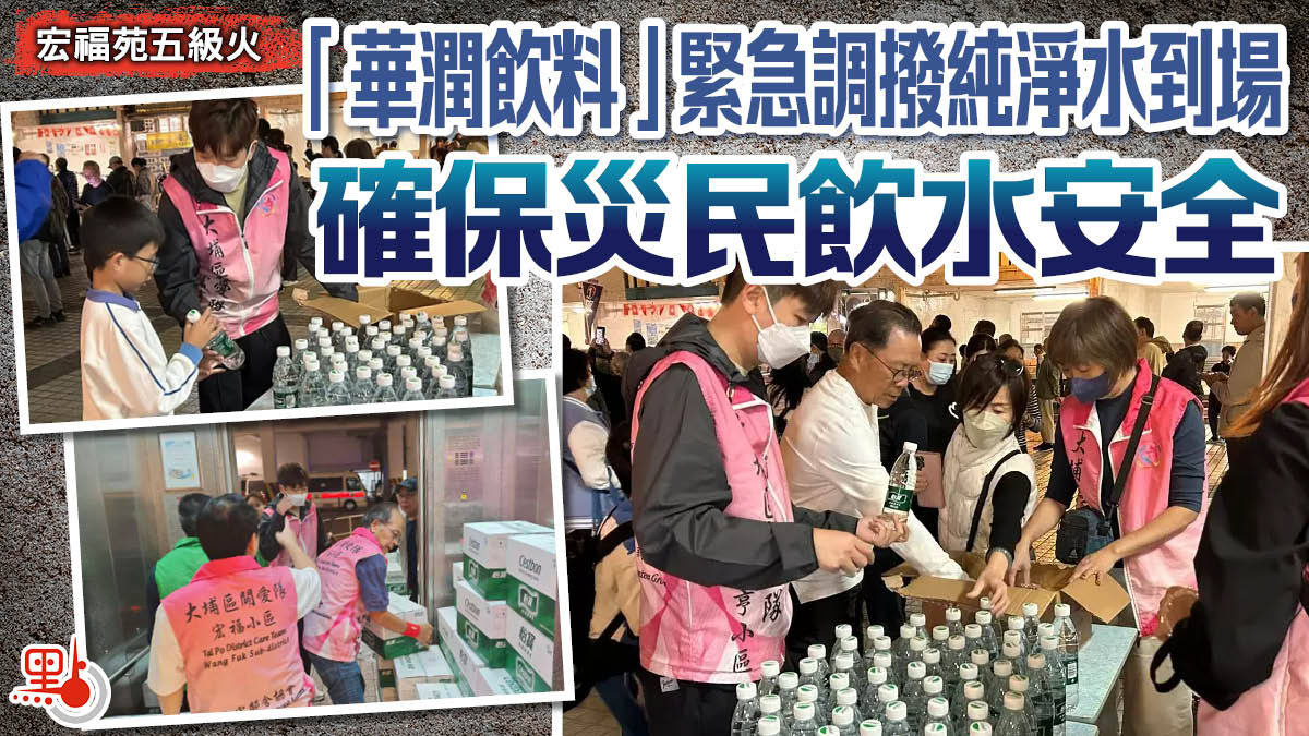 華潤飲料昨日獲悉災情後,迅速啟動「救災公益快速響應機制」,2小時內緊急調配運送10080瓶555ML怡寶純淨水,傍晚6時許送達指定的大埔廣福社區會堂及廣福邨平台,以保障受災居民的基本飲水安全。