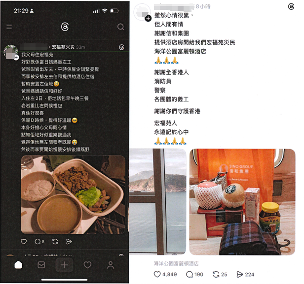 信和集團及黃廷方慈善基金12月1日表示,已經即時捐款港幣 2130 萬元賑災,並於香港黃金海岸酒店、皇家太平洋酒店及香港富麗敦海洋公園酒店提供共160 間客房,為有需要的居民提供免費住宿、三餐、洗衣服務及心意包。同時,聯同各界資源,為居民安排免費中醫診療及專業護士上門探訪,盼望他們感受到社會的關懷與支持。