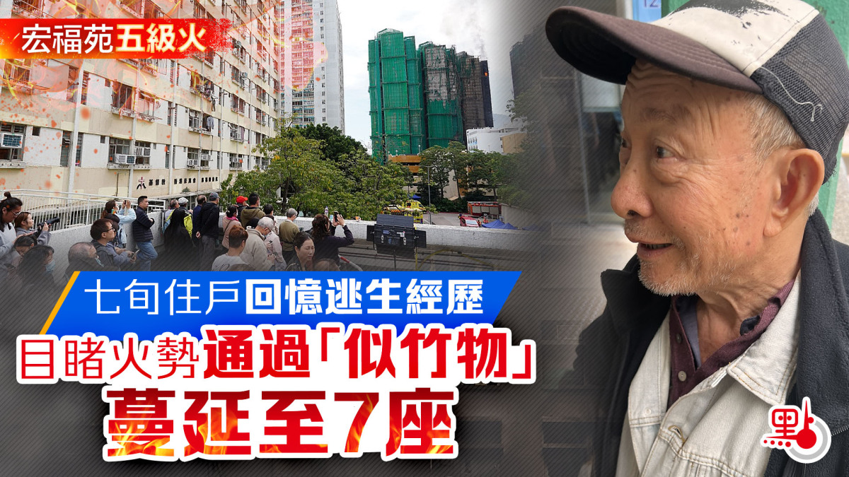及後梁伯伯開始察覺濃煙味,才得知是隔鄰的宏昌閣首先起火,「它是第6座(F座),我們是第7座(G座),後來見到火光紅紅,愈來愈猛,再過一分鐘左右,一支類似竹的東西着火,彈到我們第7座。」