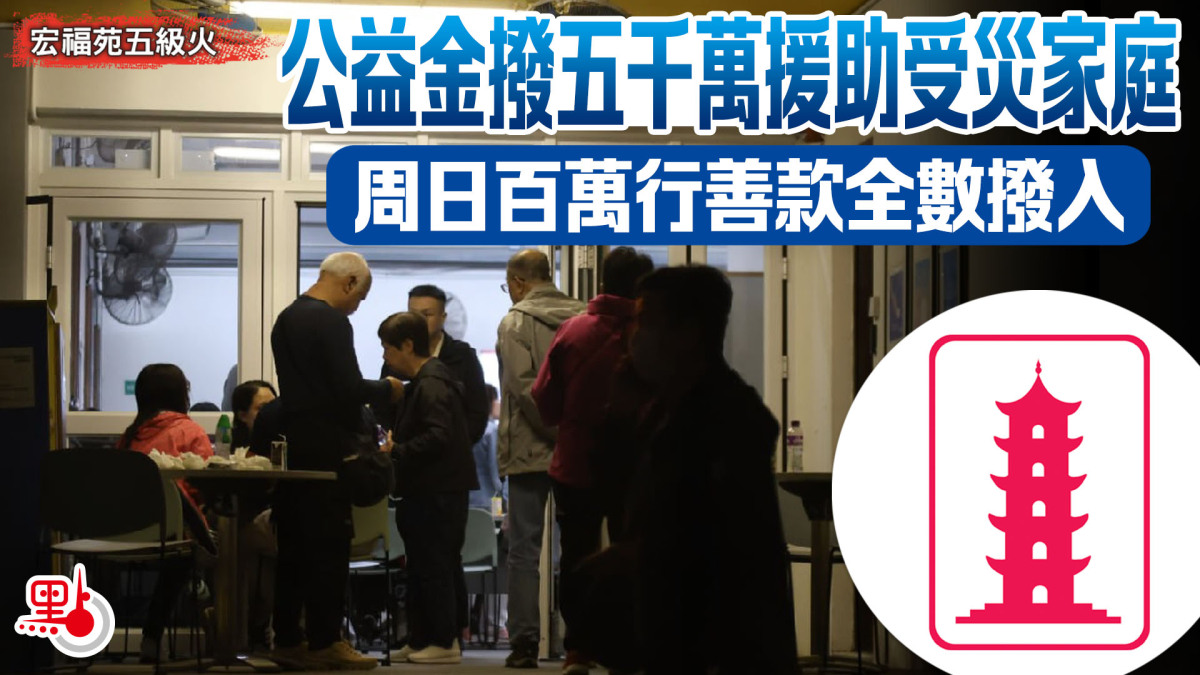 同時,公益金宣布,本周日(30日)舉行之公益金港島、九龍區百萬行 - 中九龍繞道(油麻地段)所籌得的善款,將全數撥入「公益金及時雨大埔火災援助基金」,用以支援今次受火災影響的家庭及個人。