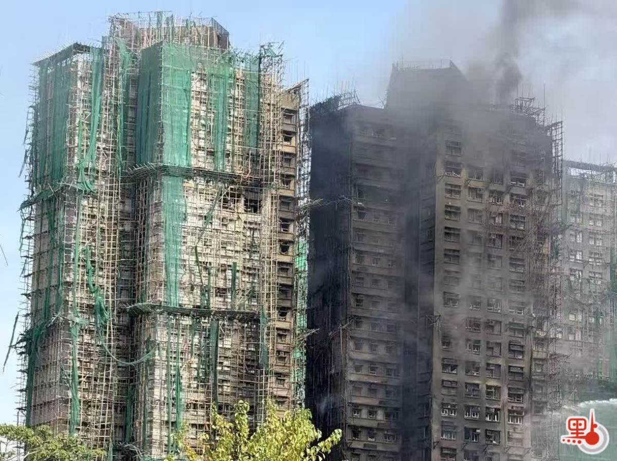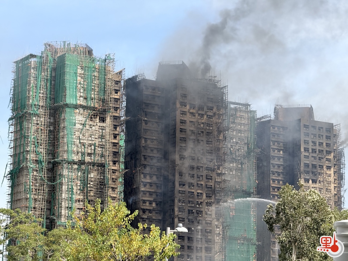 【點新聞報道】大埔宏福苑昨日(26日)發生五級火警,造成多人傷亡,消防人員仍在進行滅火行動。事故已增至44人遇難;傷者中有45人情況嚴重,亦有7名消防人員受傷。今日(27日)下午1時許,點新聞記者現場可見,火勢還未完全撲滅,宏仁閣中部、宏新閣中上部以及宏泰閣上部仍冒黑煙;宏新閣頂部還有火苗不斷外溢。