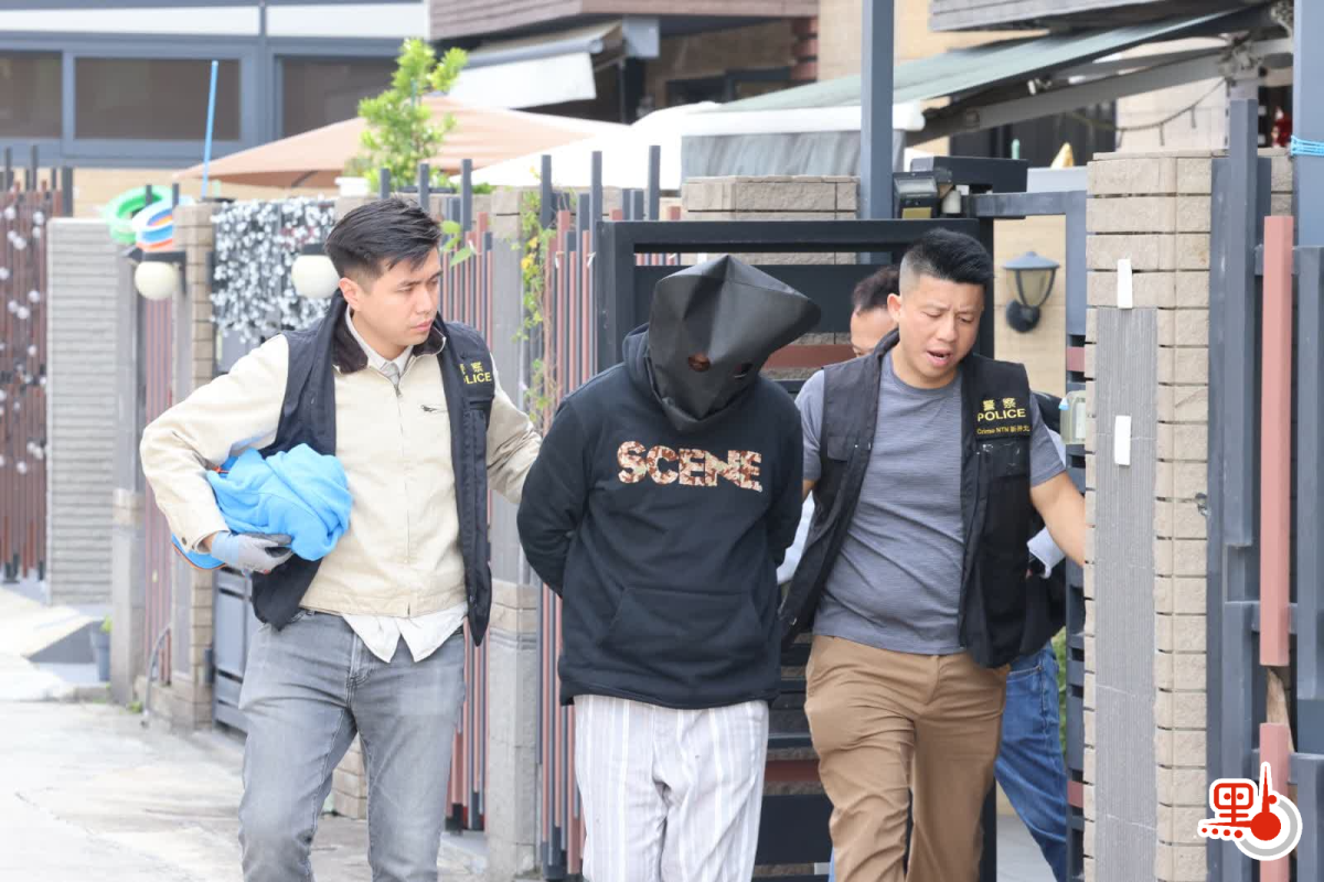 直至今日下午1時許,重案組探員再將涉案被捕的宏業建築工程有限公司姓何董事,黑布蒙頭鎖上手拷押至元朗庸園路121號蝦尾新村一幢三層高村屋,在律師陪同下進入村屋展開搜查;約半小時後,重案組探員完成搜證將被捕人押返警署作進一步調查。