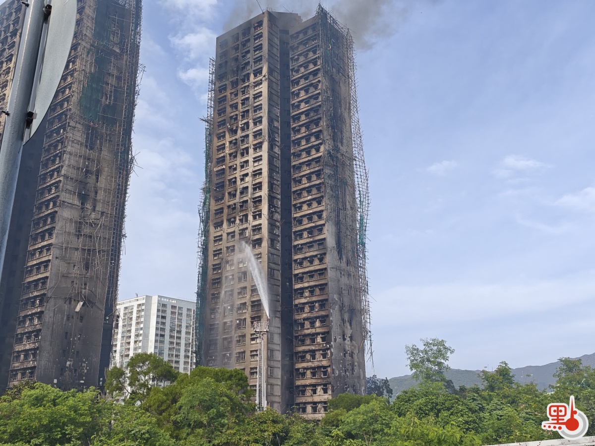 (有片+多圖)宏福苑五級火|1大廈頂層火舌未熄 其餘火情有效控制