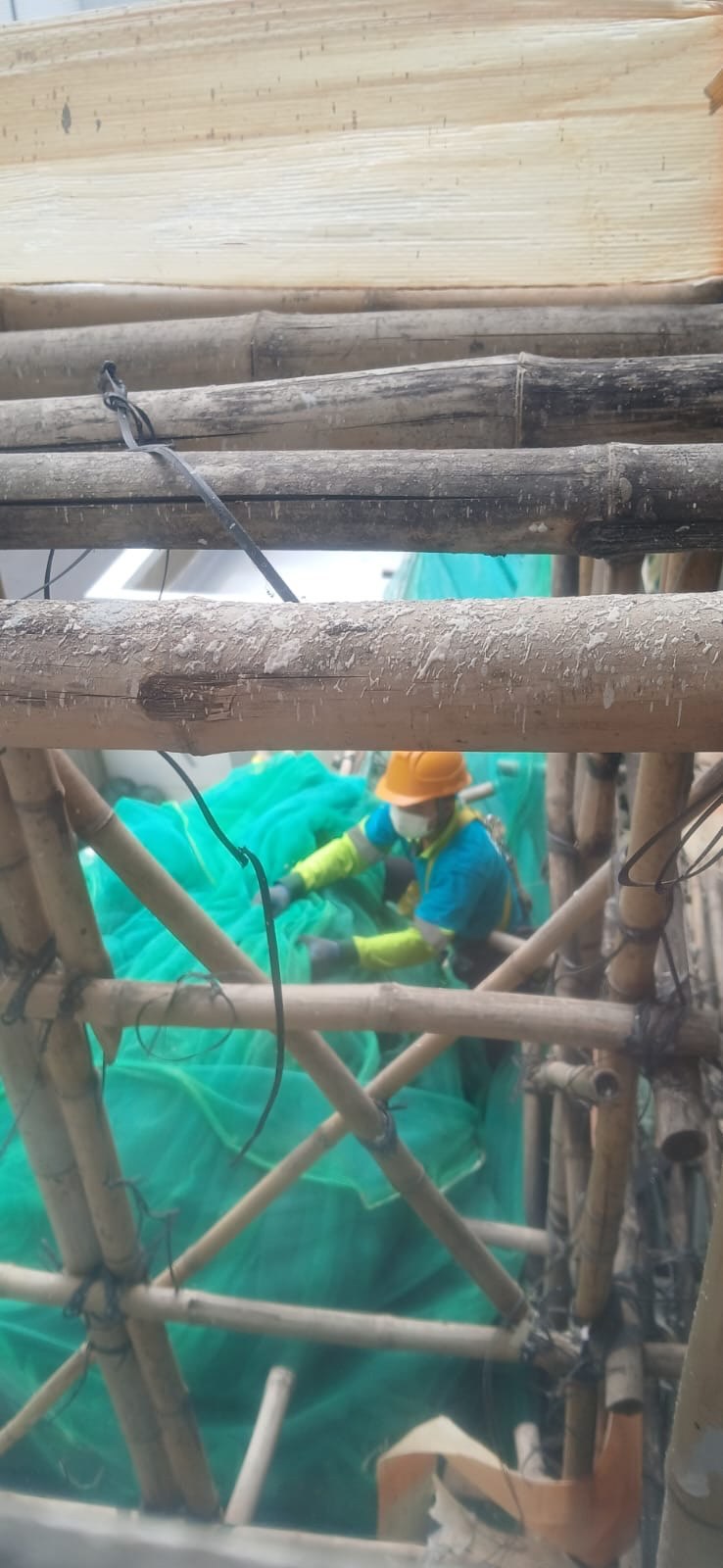事件發生後,有市民發現多區維修中的屋苑急拆棚架。石籬有屋苑居民拾起工人拆下的棚網碎片測試阻燃性,「執咗少少去燒下睇下有冇阻燃性,點知係越燒越快!」