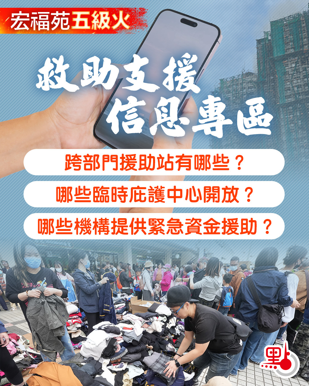 【點新聞報道】大埔宏福苑昨日(26日)發生五級火警,目前仍未救熄,截至今日(27日)中午,火警已造成至少55人死亡,逾60人受傷,包括一名消防員殉職。點新聞梳理死傷者資料查詢、臨時庇護中心、食物及被褥支援、情緒支援等救助信息,供有需要居民一文睇清。